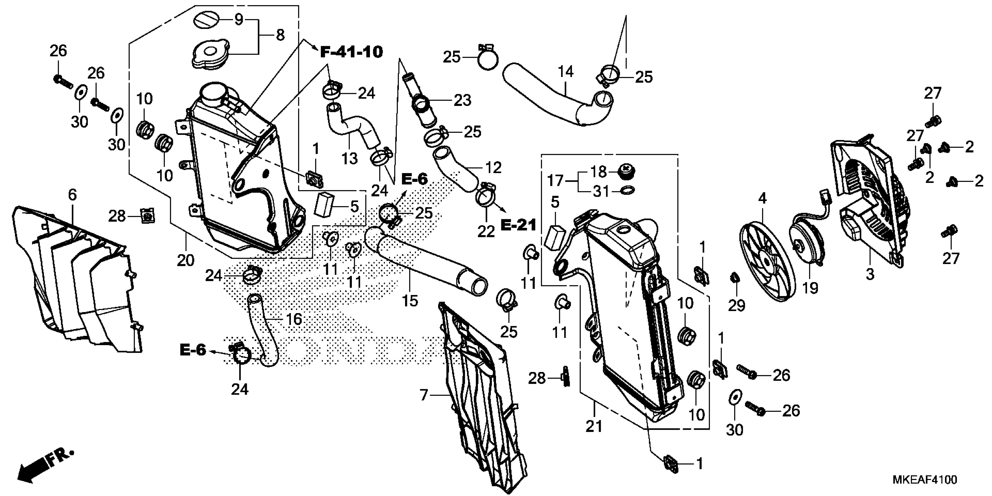 Honda CRF450RLAC (25) MOTORCYCLE, JPN, VIN# JH2PD111-SK600001 TO JH2PD111-SK699999 RADIATOR Diagram