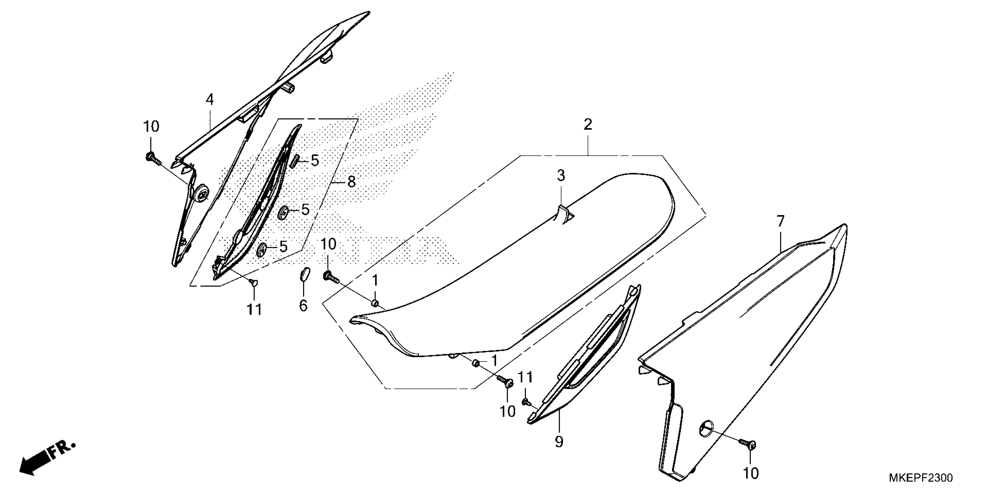 Honda CRF450RXAC (23) MOTORCYCLE, JPN, VIN# JH2PE103-PK400001 TO JH2PE103-PK499999 SEAT@SIDE COVER Diagram