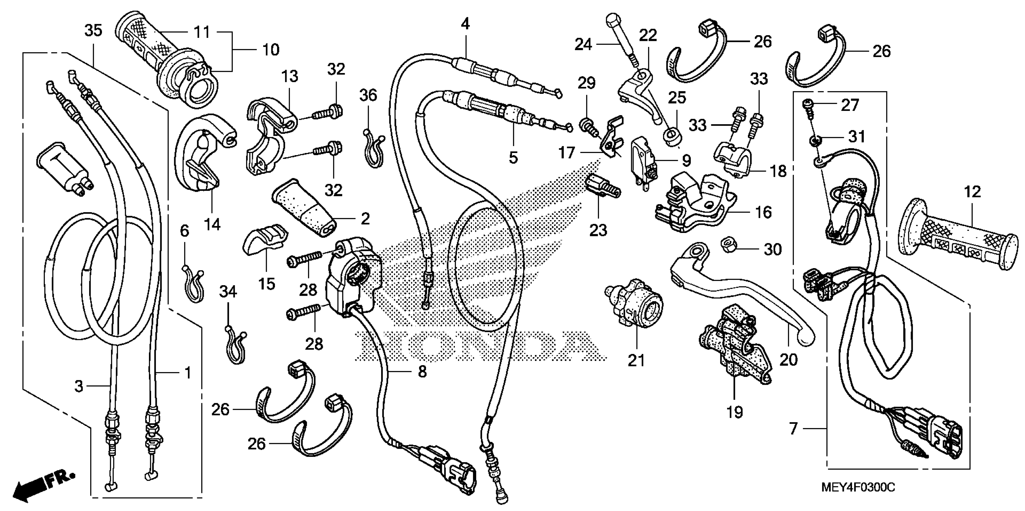 Honda CRF450XA (06) CRF450X, JPN, VIN# JH2PE060-6K100001 TO JH2PE060-6K199999 HANDLE LEVER + SWITCH + CABLE Diagram