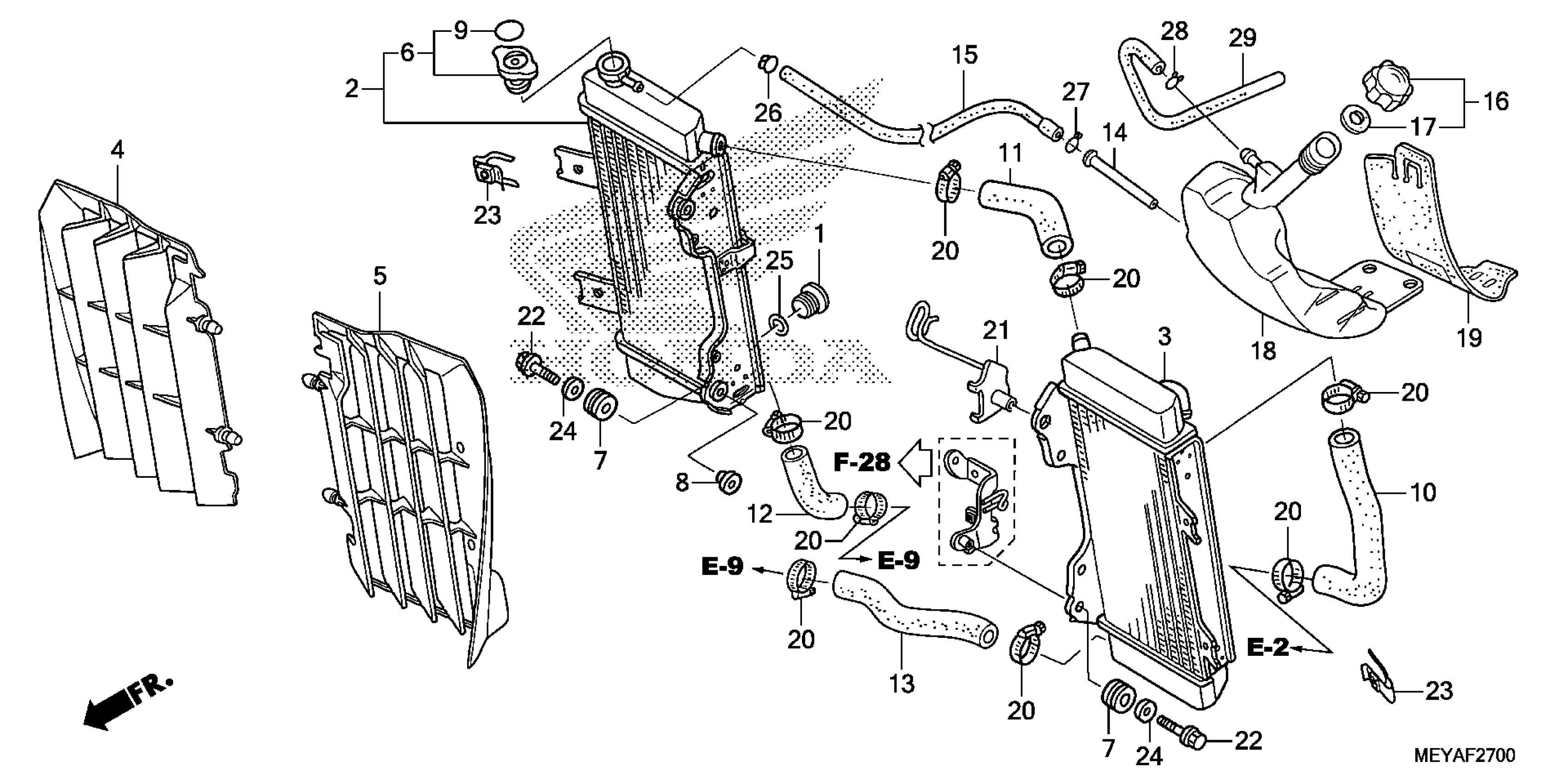 Honda CRF450XAC (17) CRF450X, JPN, VIN# JH2PE061-HK700001 RADIATOR Diagram