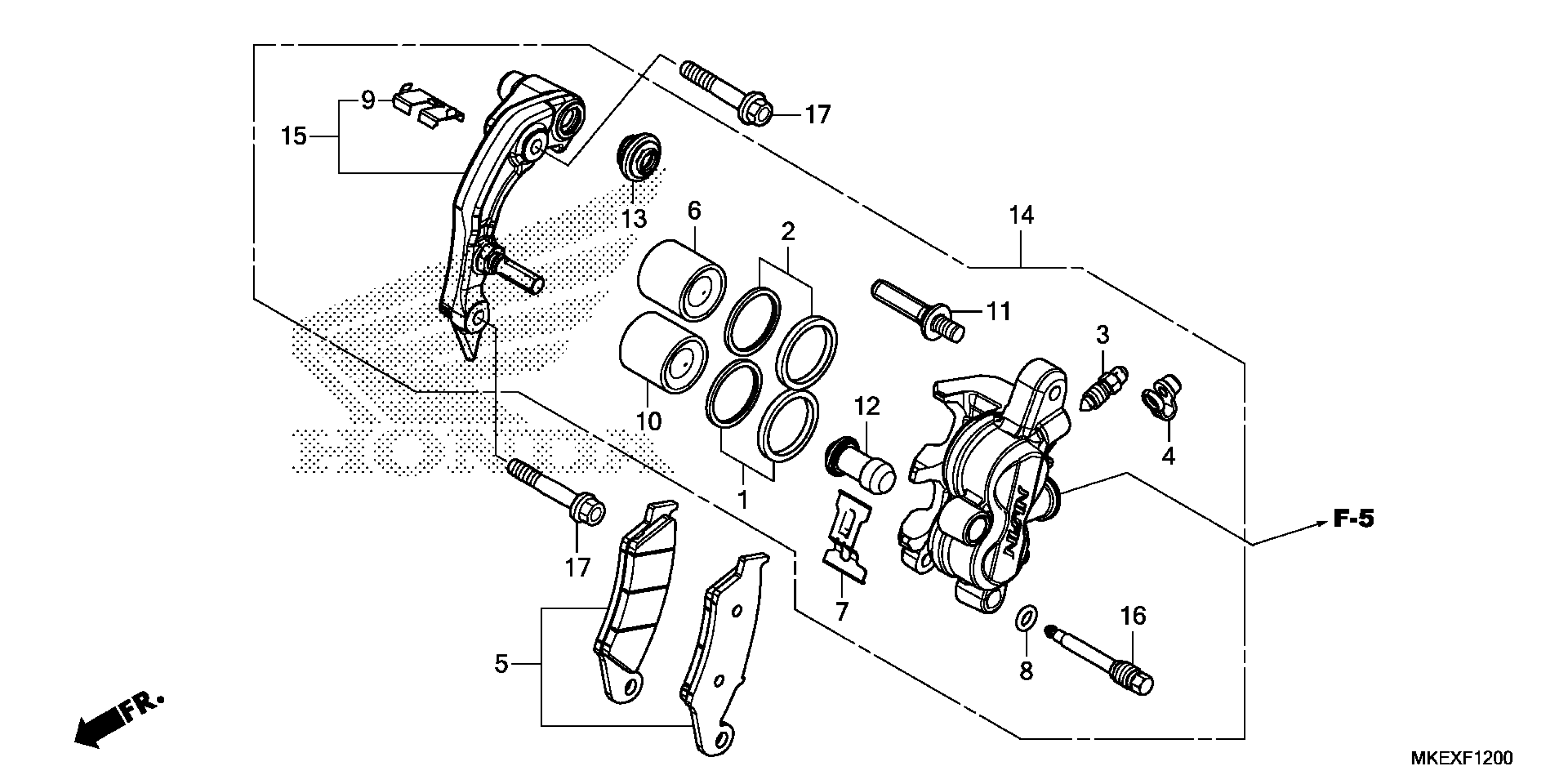 Honda CRF450XAC (19) MOTORCYCLE, JPN, VIN# JH2PE091-KK000001 TO JH2PE091-KK099999 FRONT BRAKE CALIPER Diagram