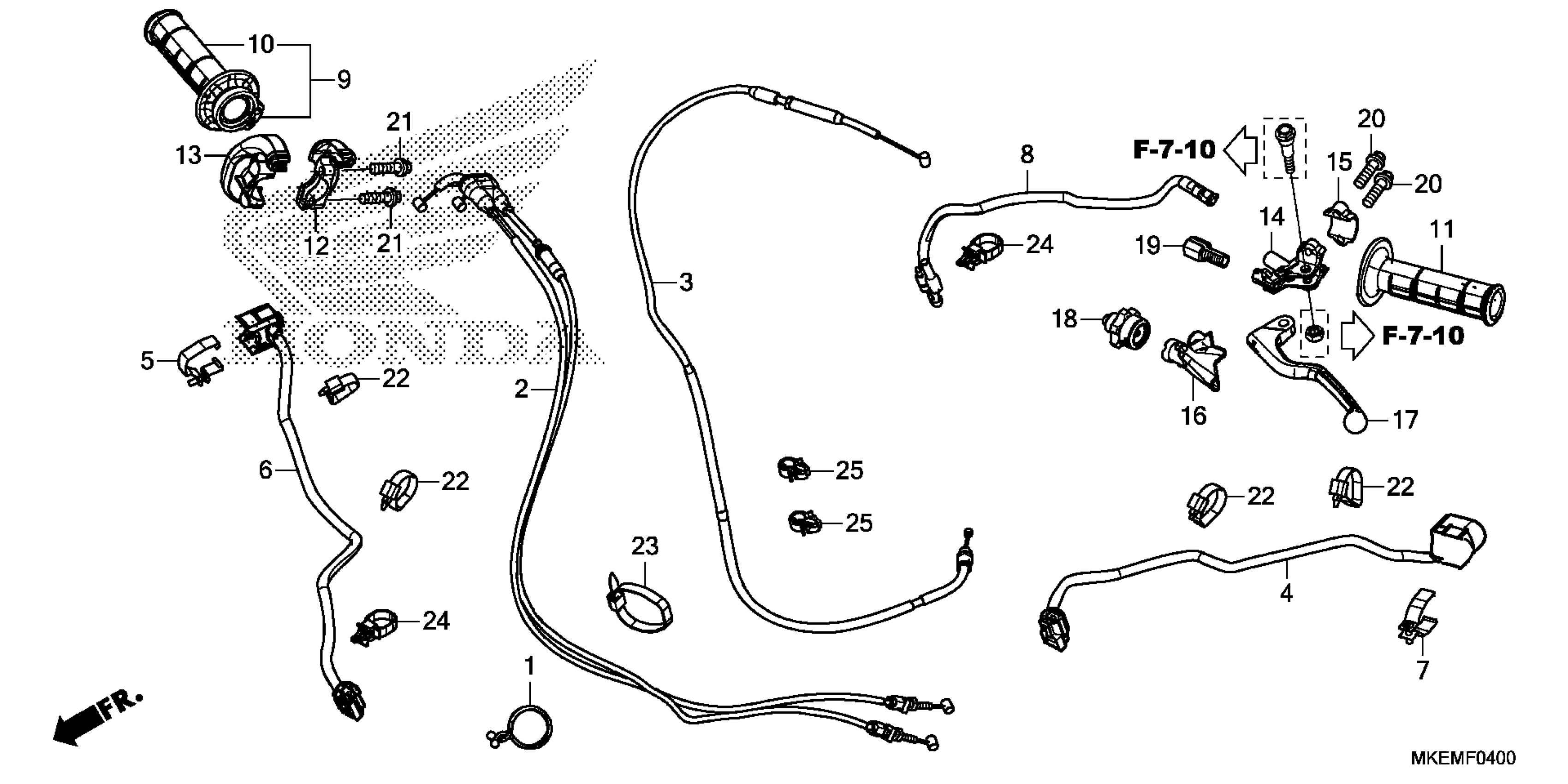 Honda CRF450XAC (21) MOTORCYCLE, JPN, VIN# JH2PE091-MK200001 TO JH2PE091-MK299999 HANDLE LEVER@SWITCH@CABLE Diagram