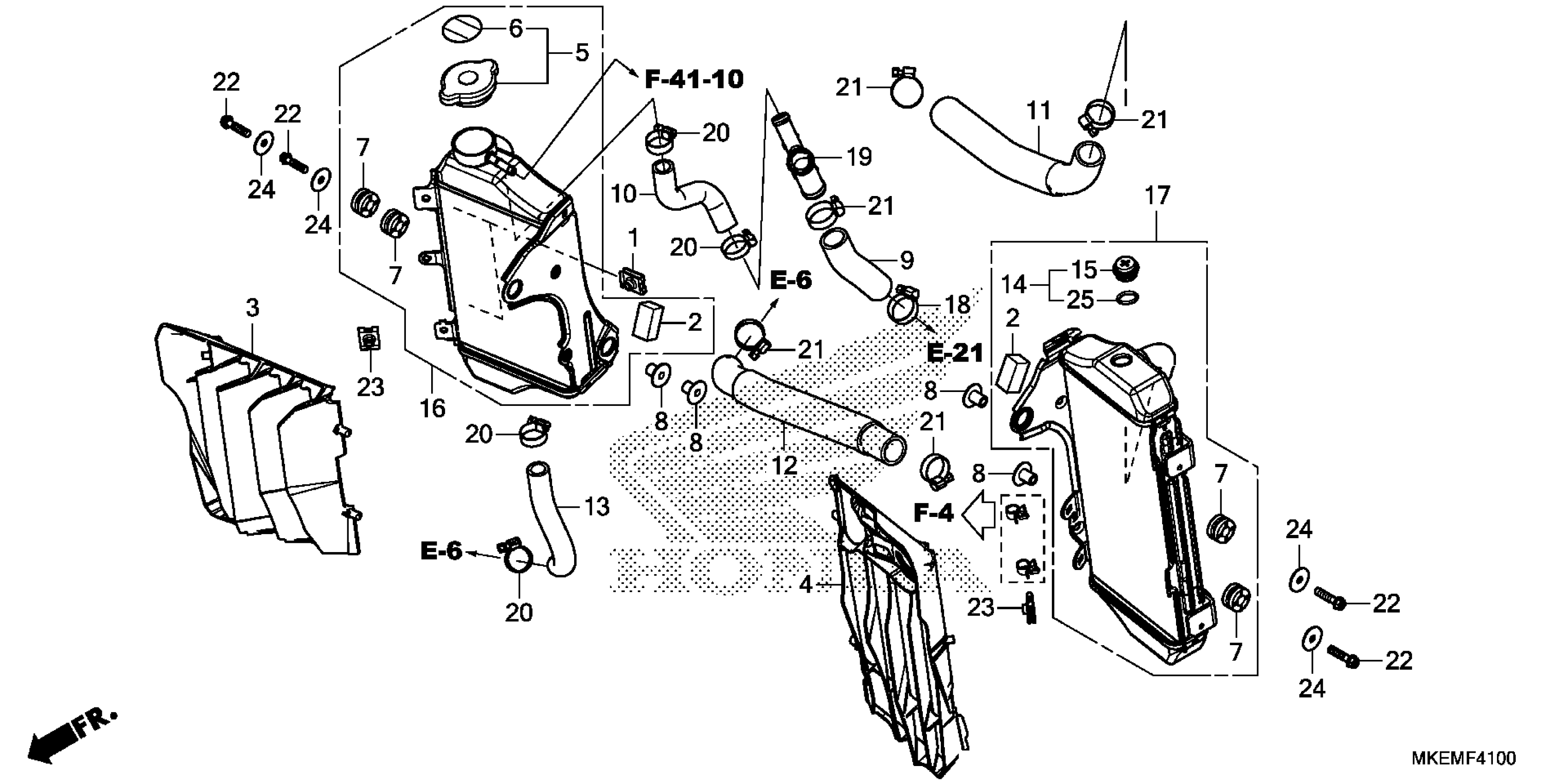 Honda CRF450XAC (21) MOTORCYCLE, JPN, VIN# JH2PE091-MK200001 TO JH2PE091-MK299999 RADIATOR Diagram