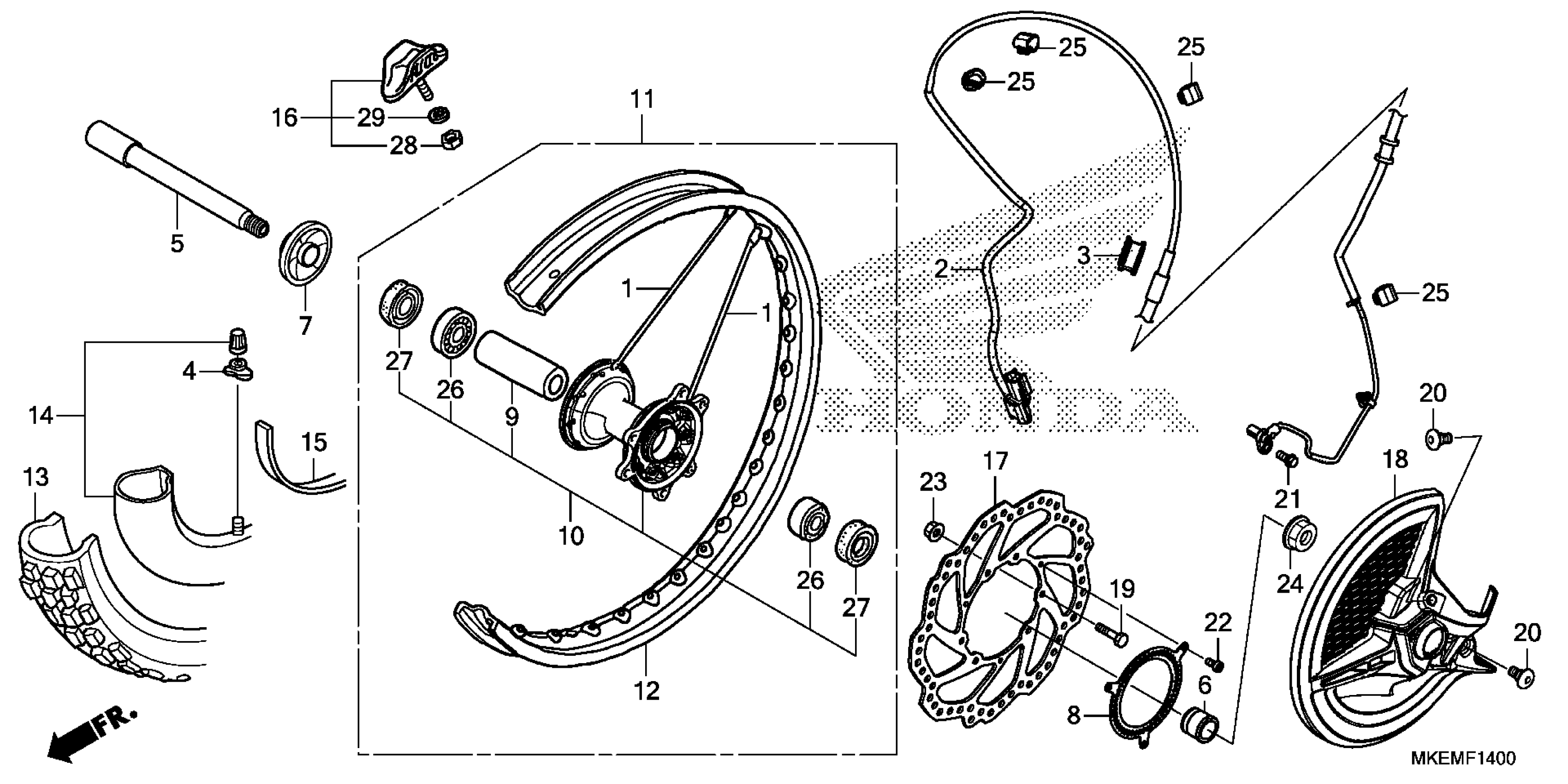 Honda CRF450XAC (25) MOTORCYCLE, JPN, VIN# JH2PE091-SK600001 TO JH2PE091-SK699999 FRONT WHEEL Diagram