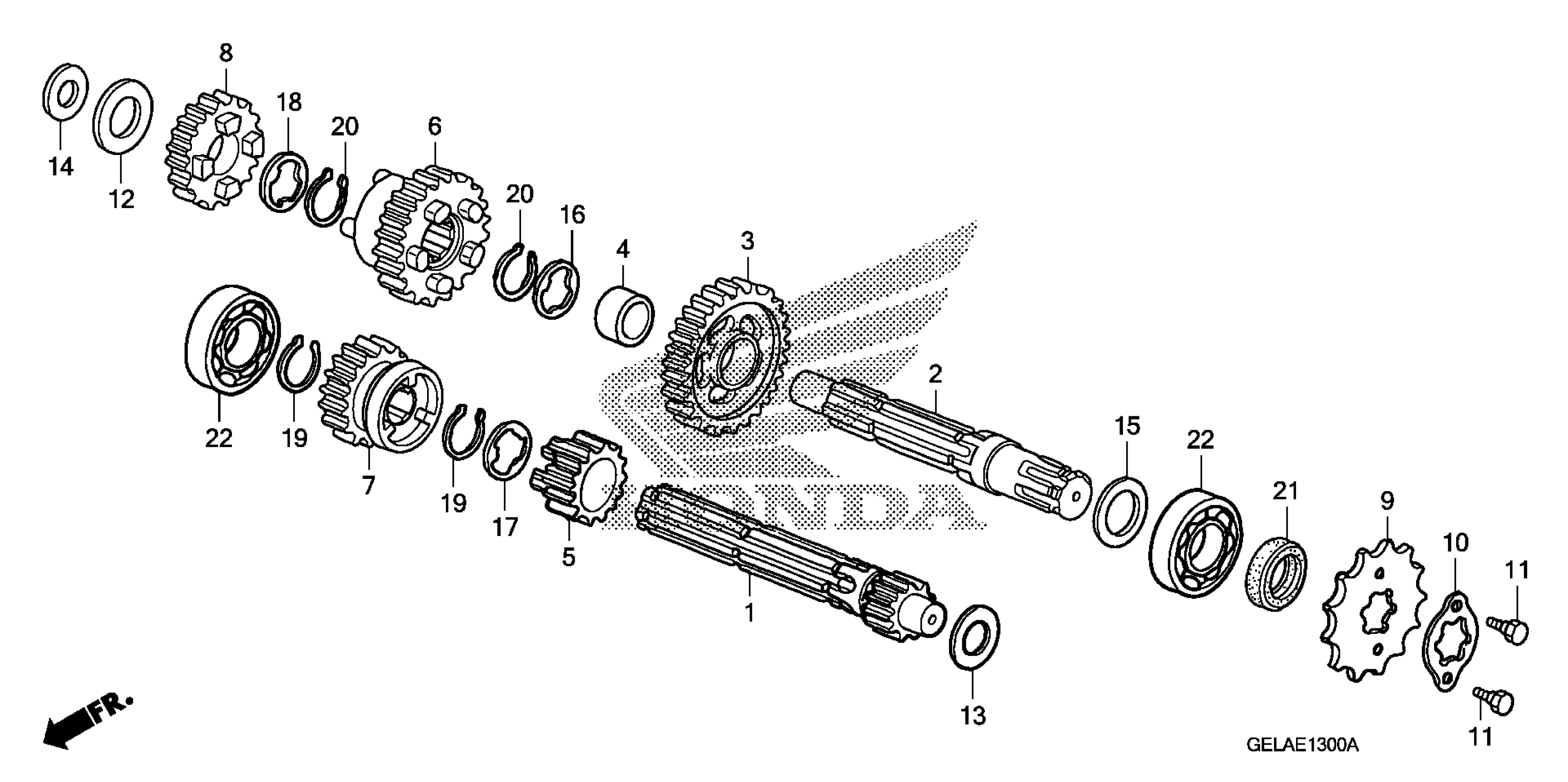 Honda CRF50FA (11) MOTORCYCLE, JPN, VIN# JH2AE030-BK100001 TO JH2AE030-BK199999 TRANSMISSION Diagram