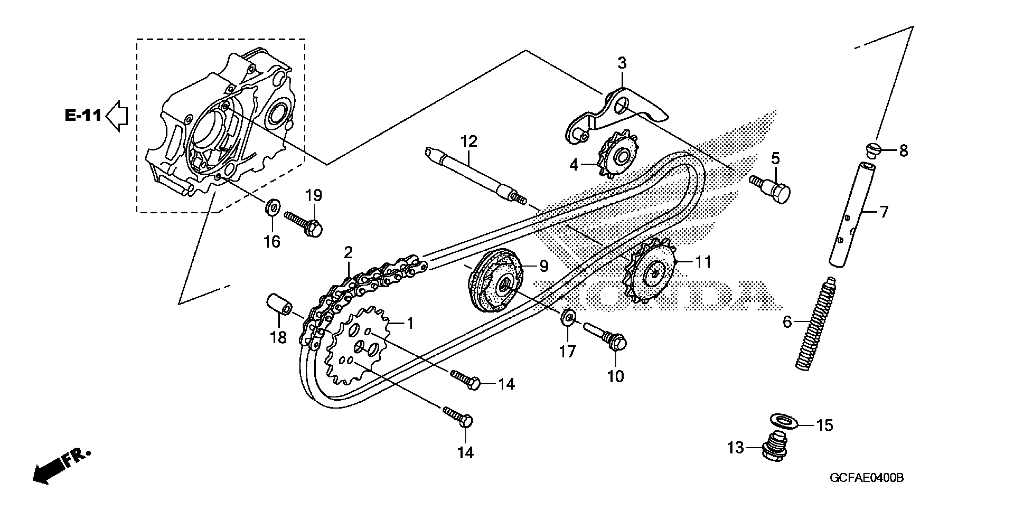 Honda CRF70FA (05) MOTORCYCLE, JPN, VIN# JH2DE020-5K800001 TO JH2DE020-5K899999 CAM CHAIN + TENSIONER Diagram