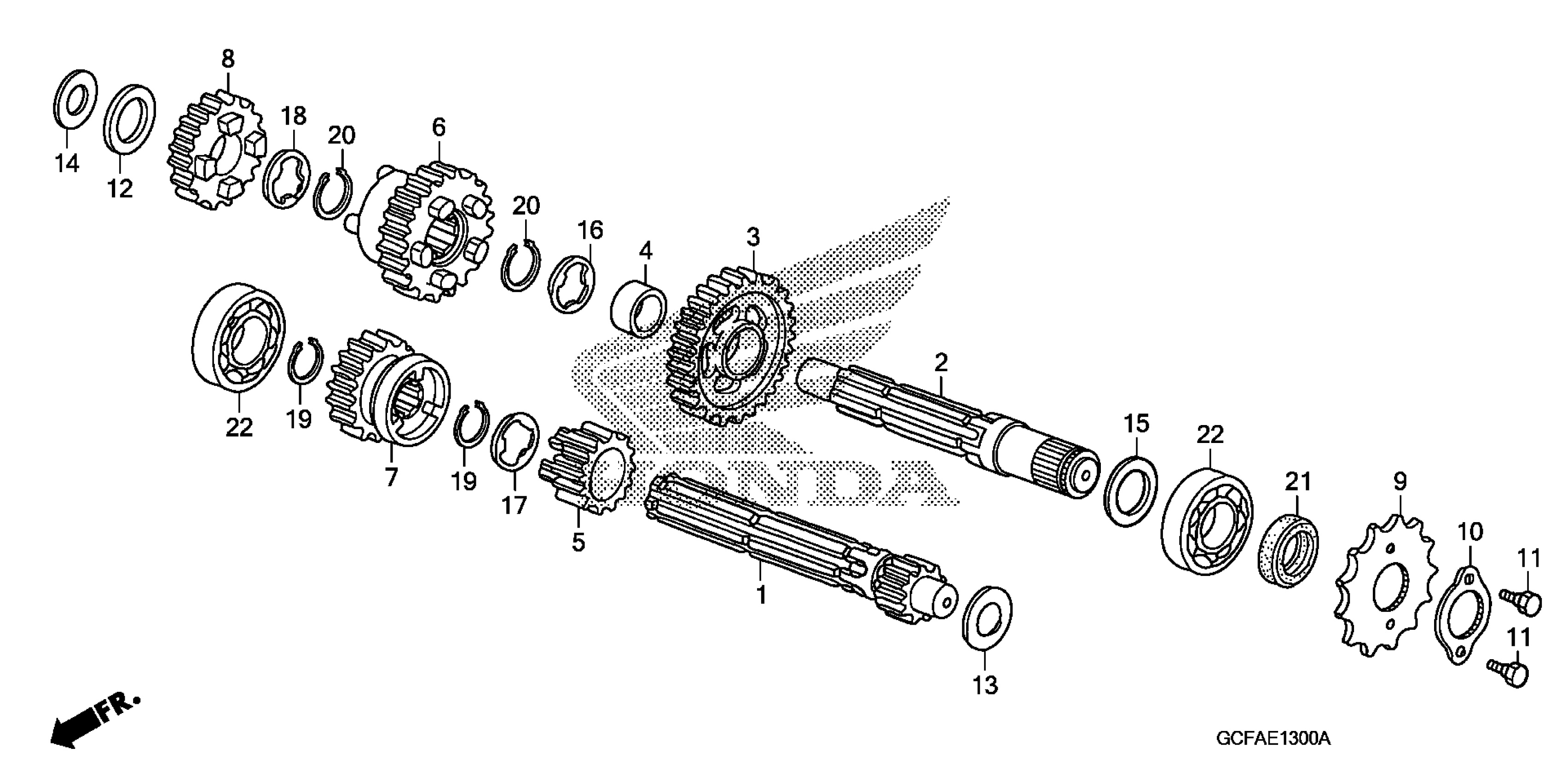 Honda CRF70FA (11) MOTORCYCLE, JPN, VIN# JH2DE020-BK300001 TO JH2DE020-BK399999 TRANSMISSION Diagram