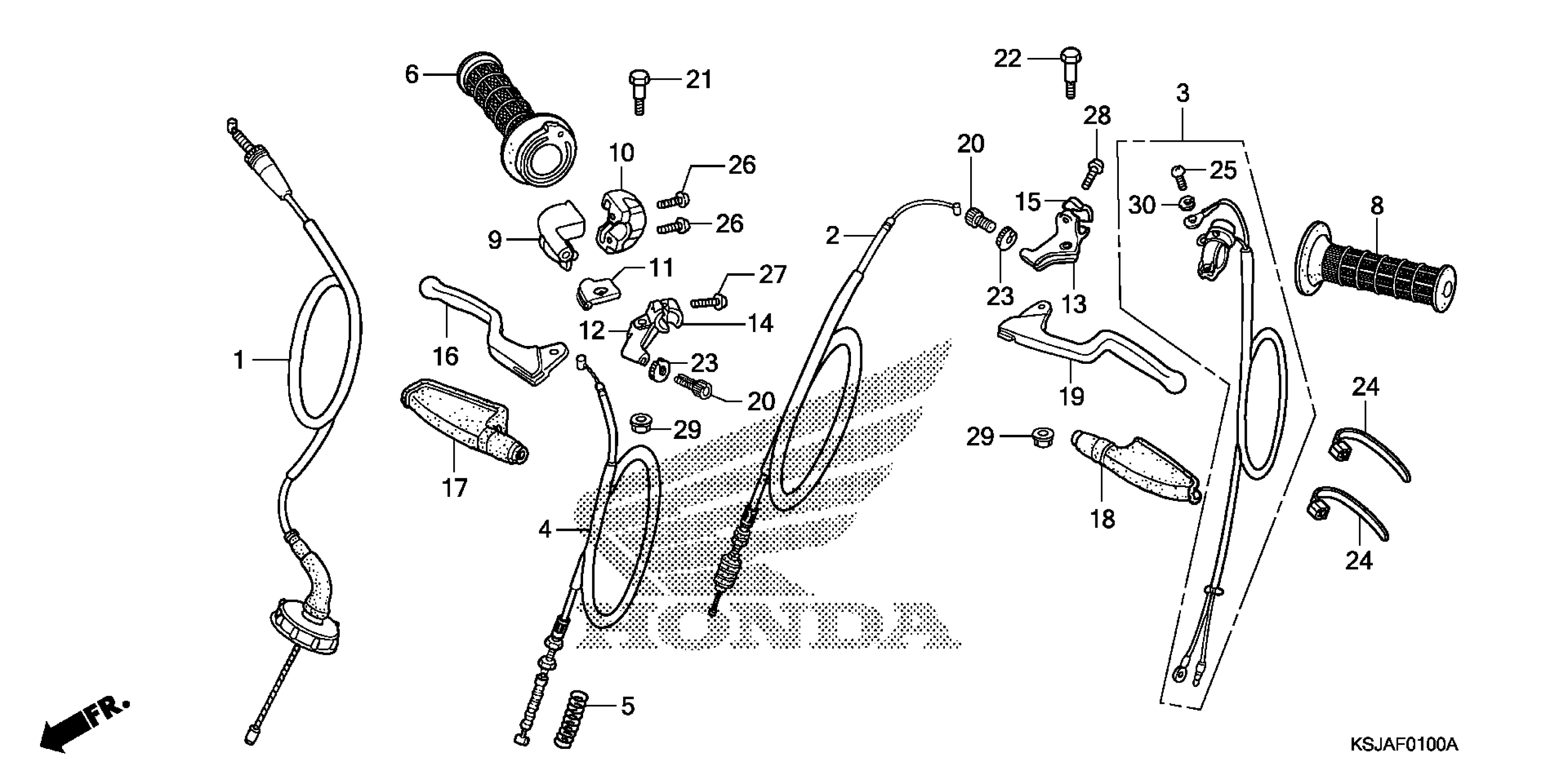 Honda CRF80FA (11) MOTORCYCLE, JPN, VIN# JH2HE010-BK900001 HANDLE LEVER + CABLE Diagram