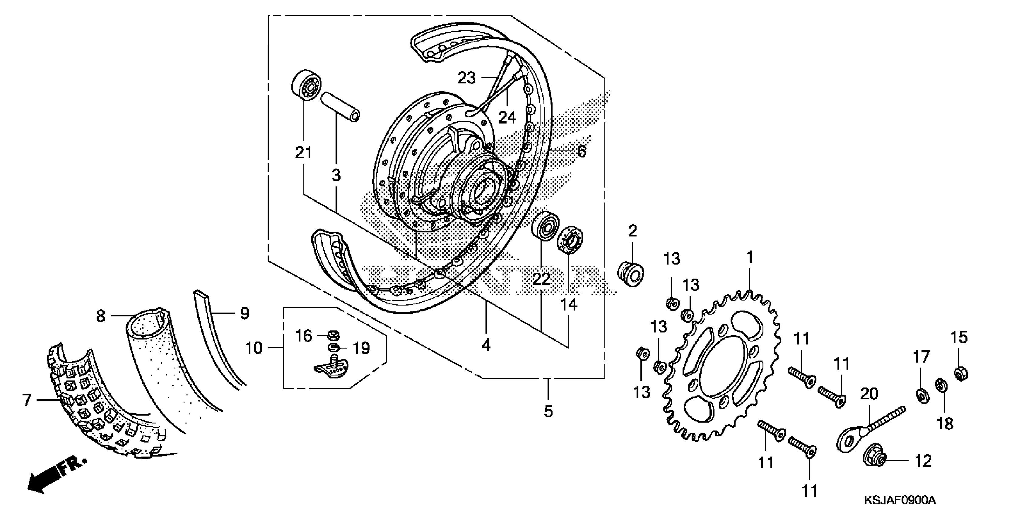 Honda CRF80FA (11) MOTORCYCLE, JPN, VIN# JH2HE010-BK900001 REAR WHEEL Diagram