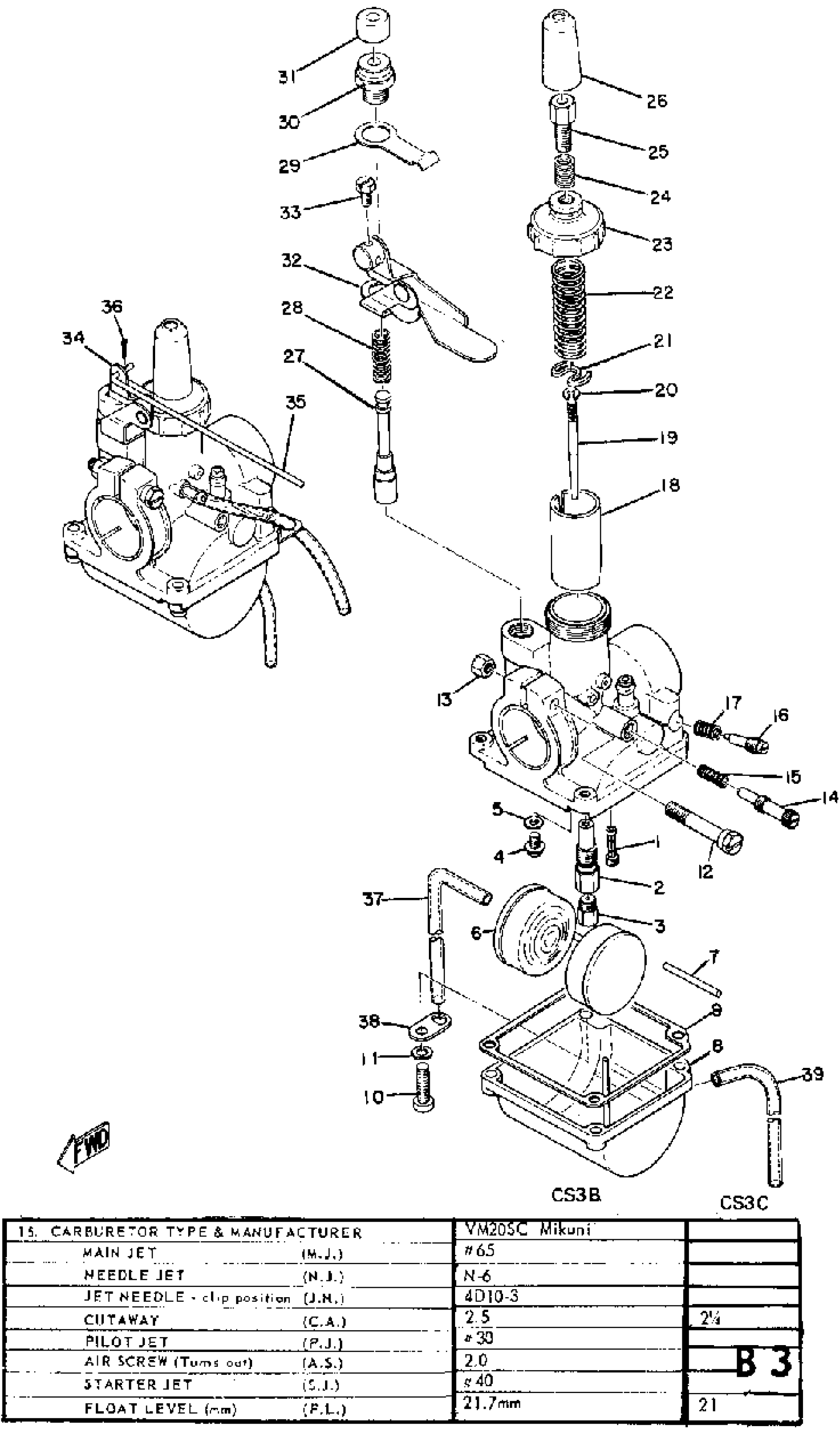 Yamaha CS3C (CS3C) 1970 CARBURETOR Diagram