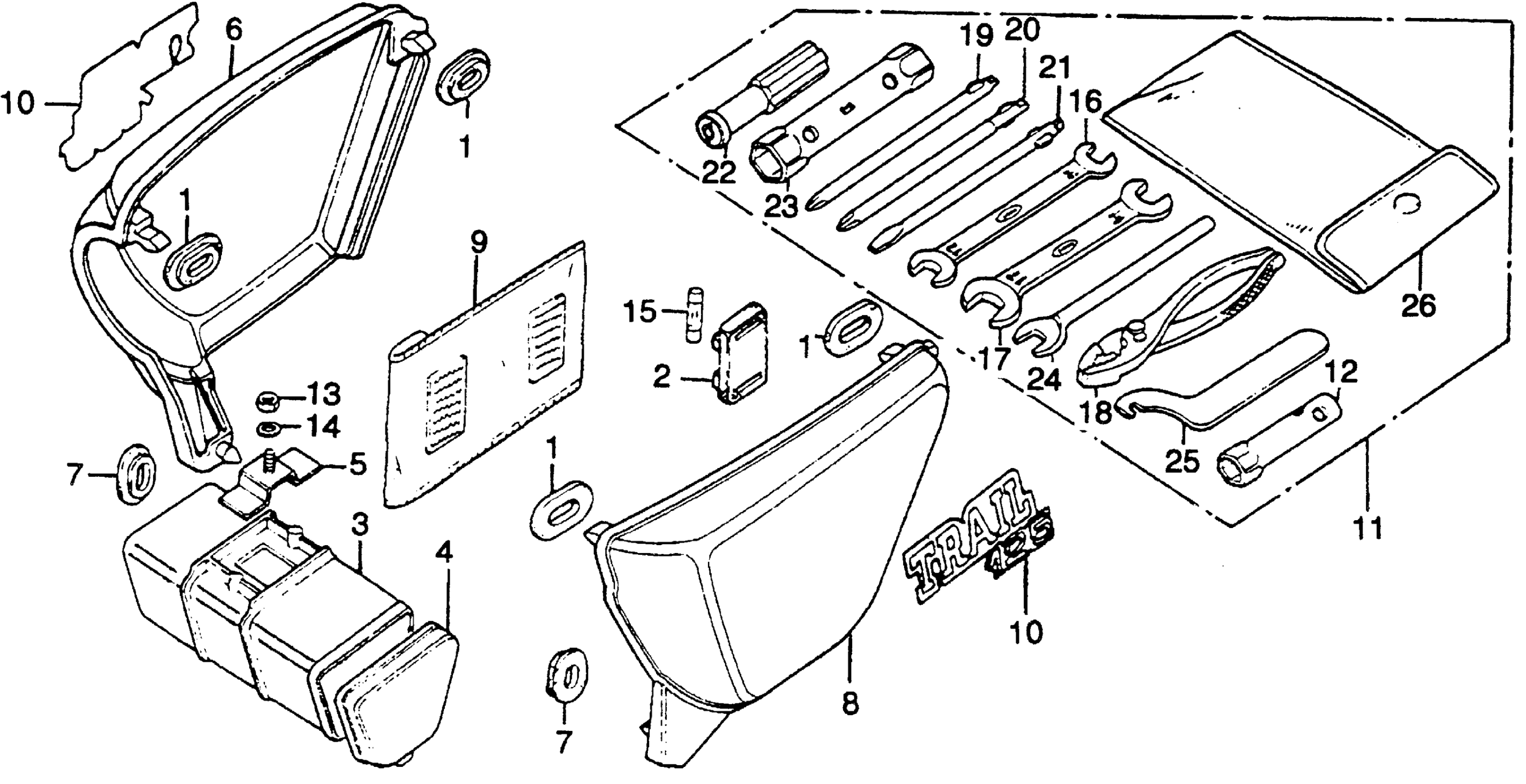 Honda CT125A (77) TRAIL 125, JPN, VIN# CT125-1010366 SIDE COVER + TOOL Diagram