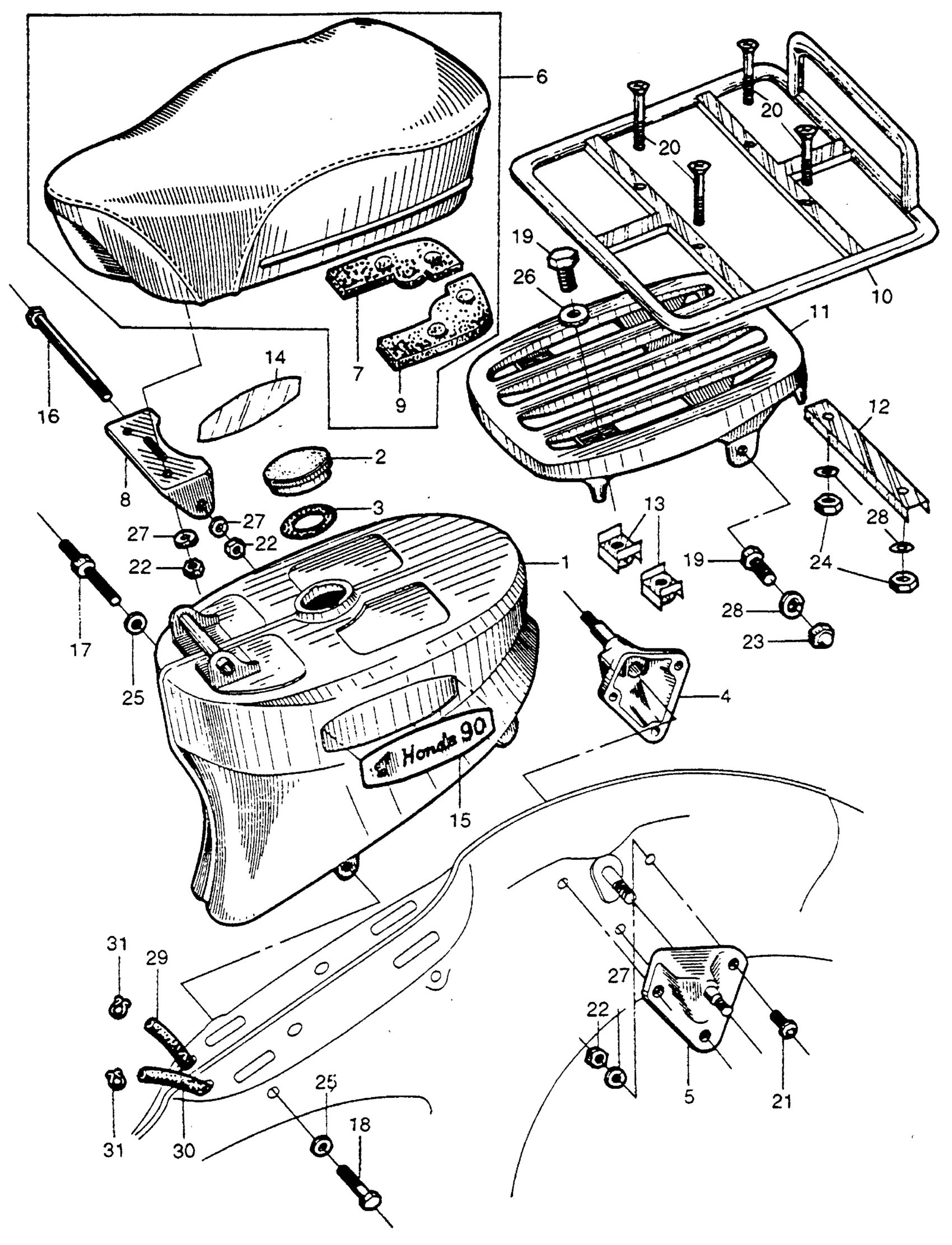 Honda CT200A MOTORCYCLE, JPN, VIN# CT200-100001 FUEL TANK + LUGGAGE CARRIER Diagram