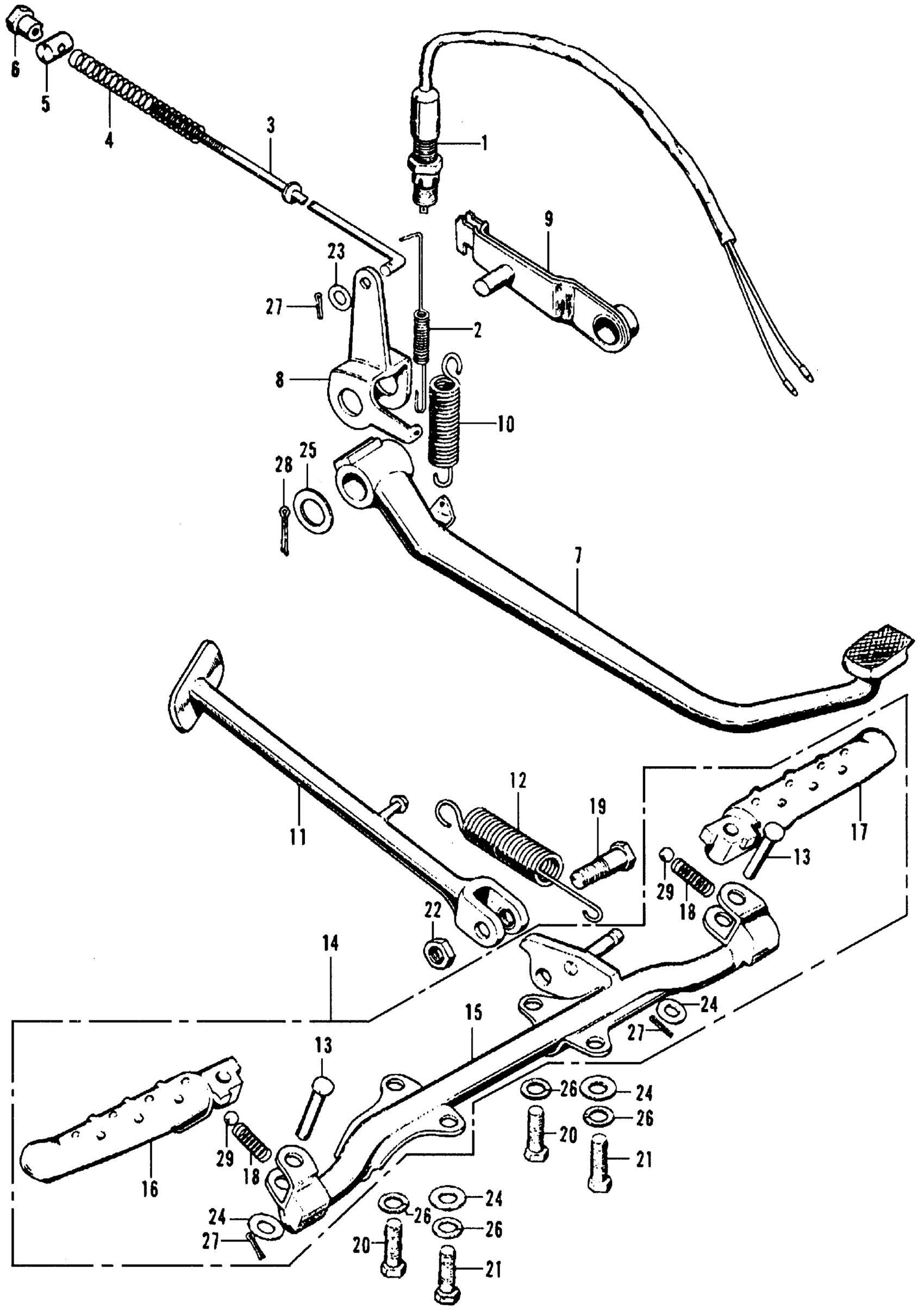 Honda CT70A MOTORCYCLE, JPN, VIN# CT70-100001 BRAKE PEDAL + STAND + STEP Diagram