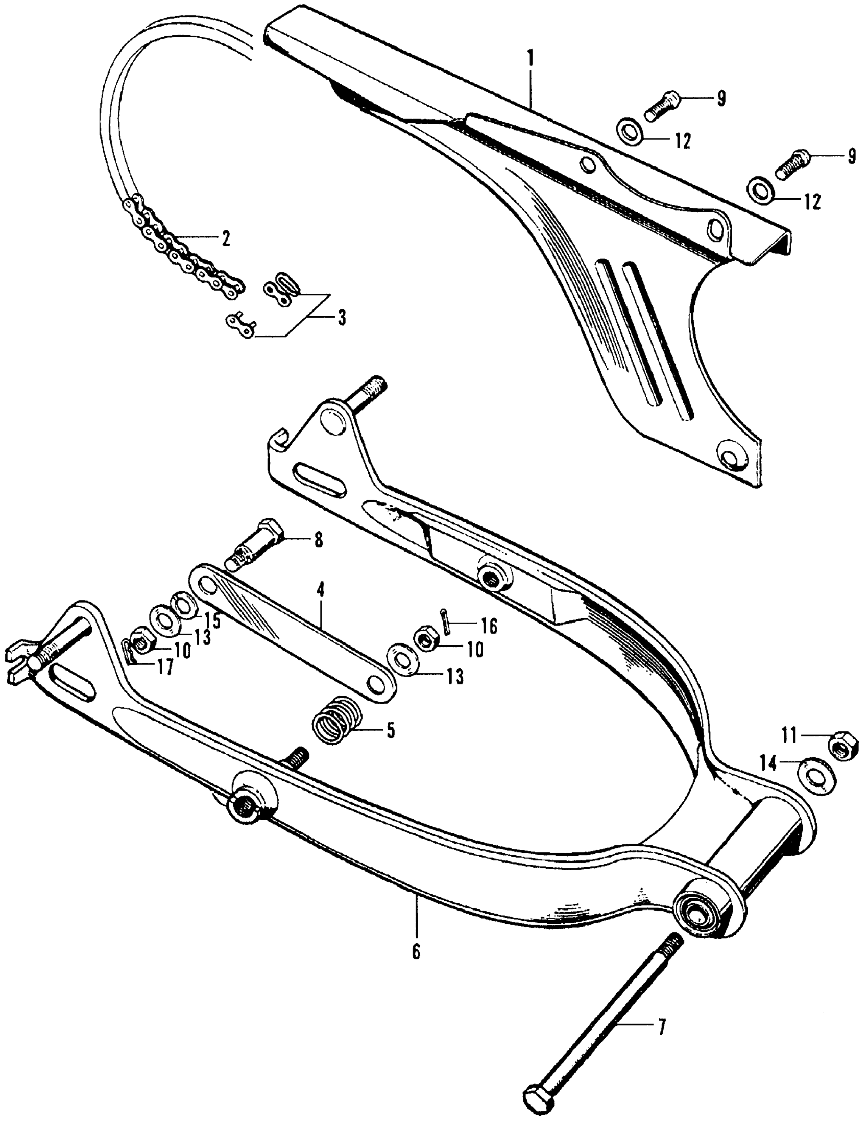 Honda CT70A MOTORCYCLE, JPN, VIN# CT70-100001 CHAIN CASE + SWINGARM Diagram