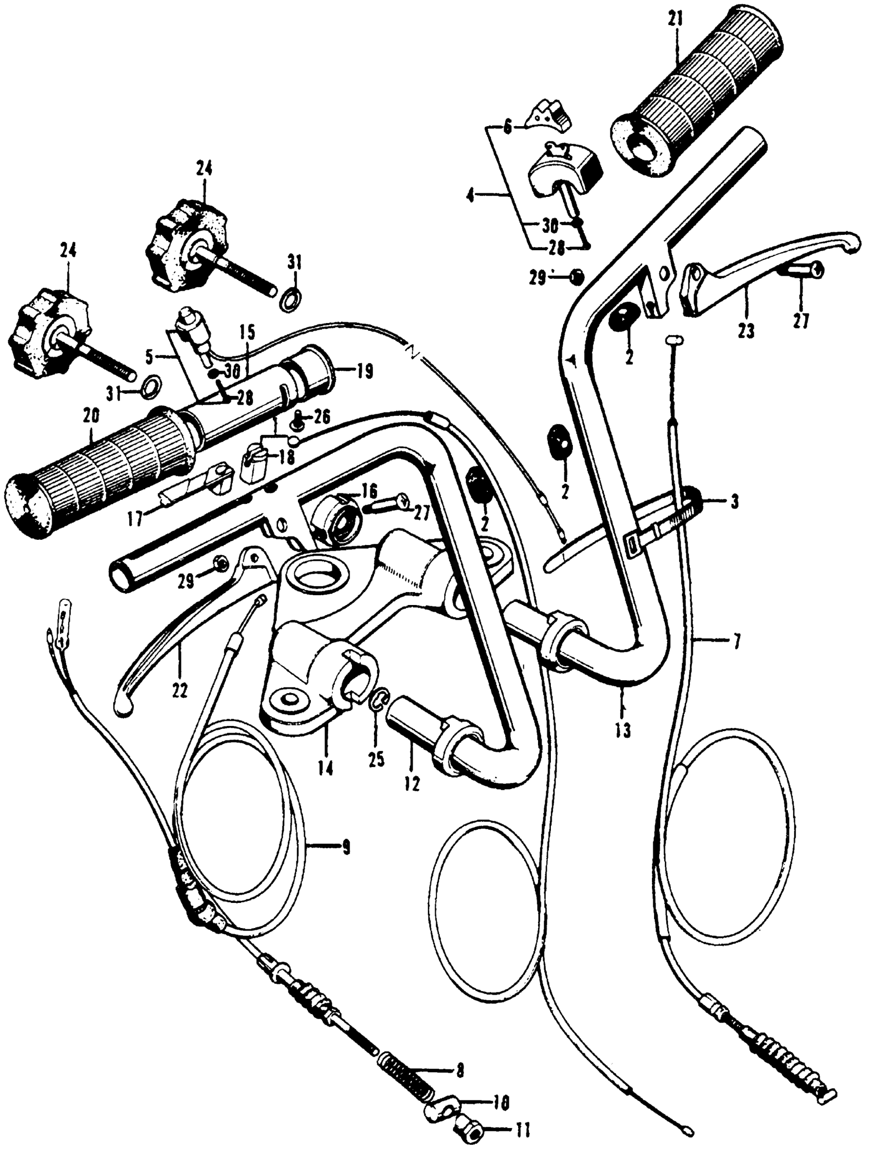 Honda CT70A MOTORCYCLE, JPN, VIN# CT70-100001 HANDLEBAR Diagram