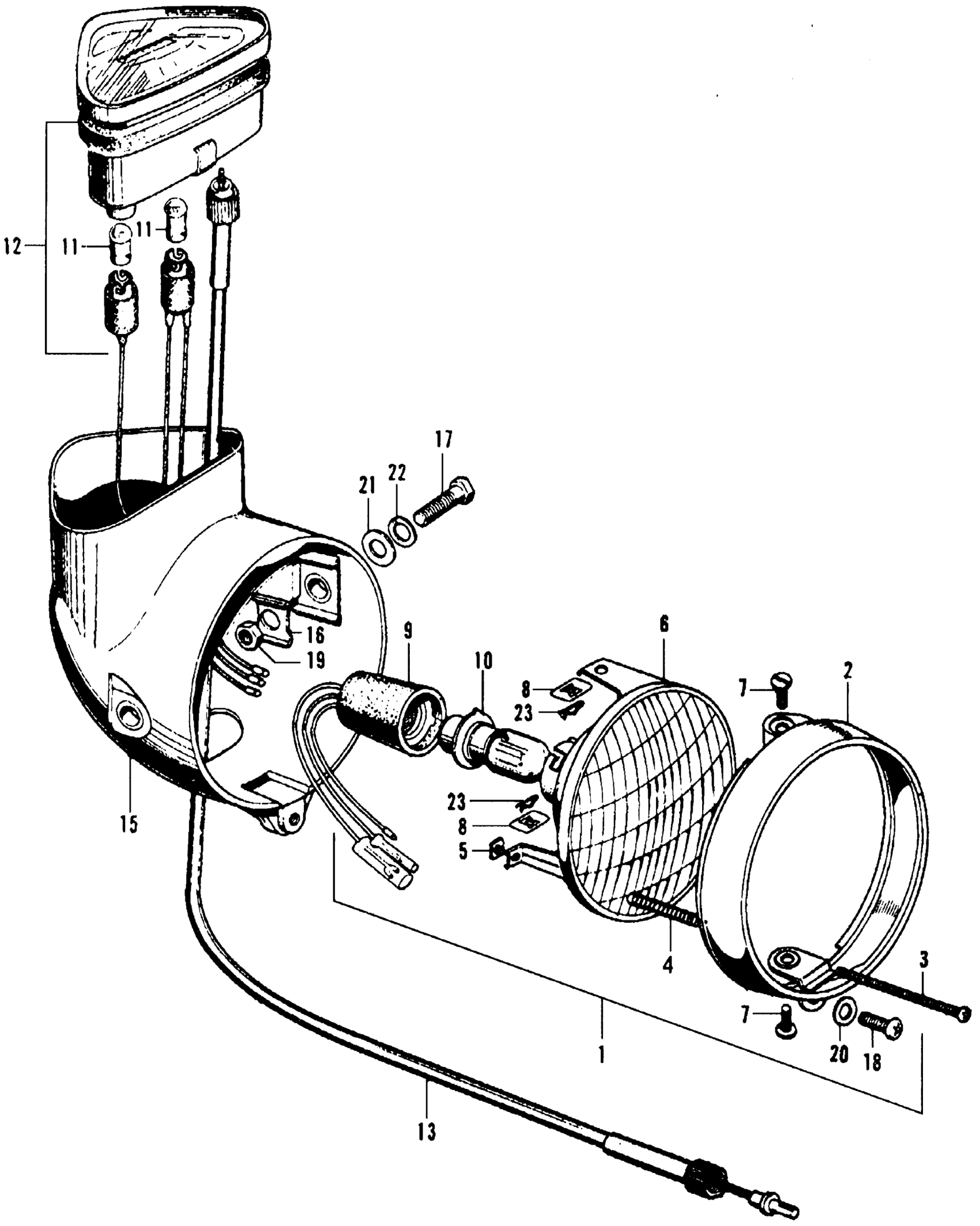 Honda CT70A MOTORCYCLE, JPN, VIN# CT70-100001 HEADLIGHT + SPEEDOMETER Diagram