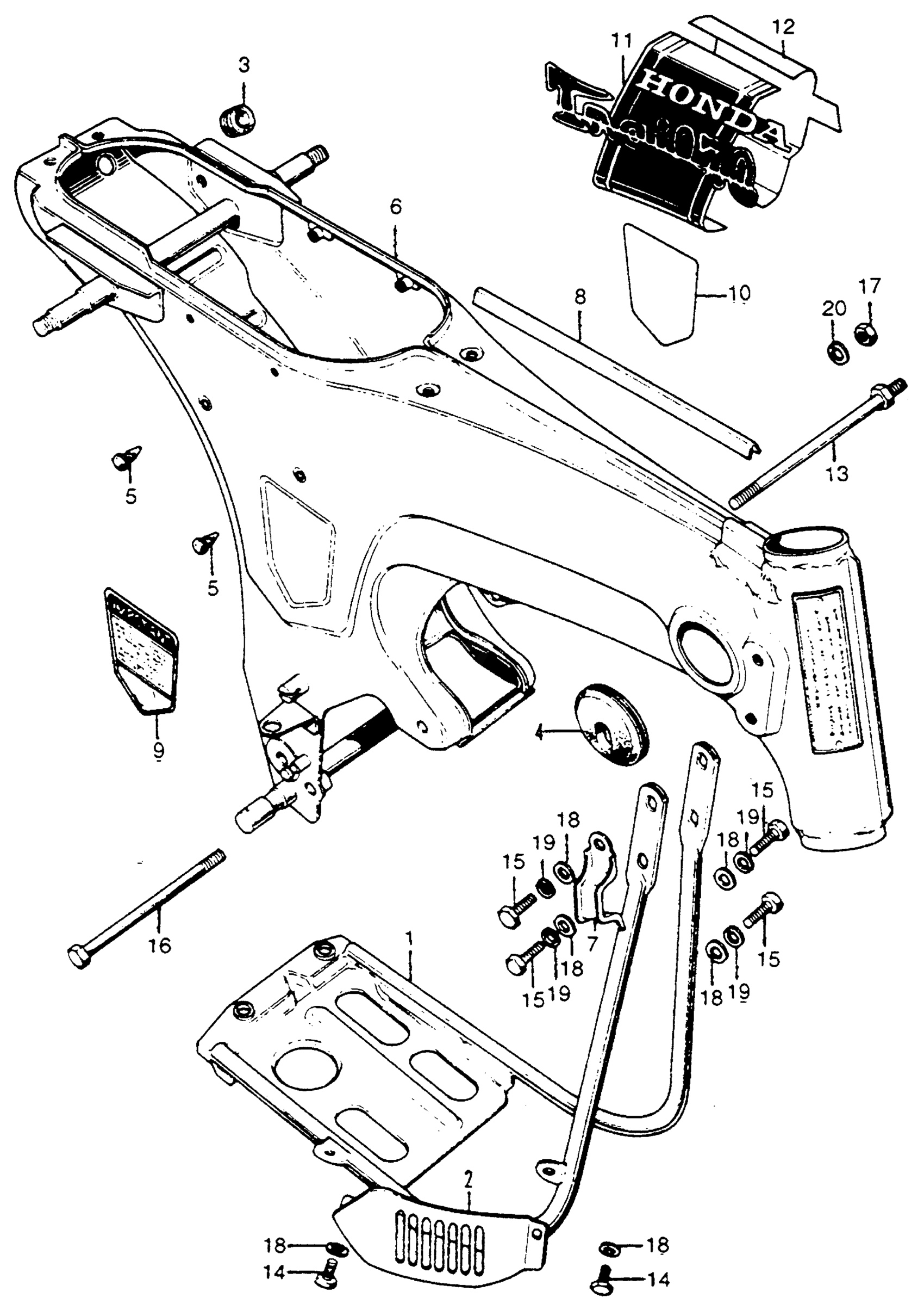 Honda CT70HA MOTORCYCLE, JPN, VIN# CT70H-100001 FRAME + CRANKCASE PROTECTOR Diagram