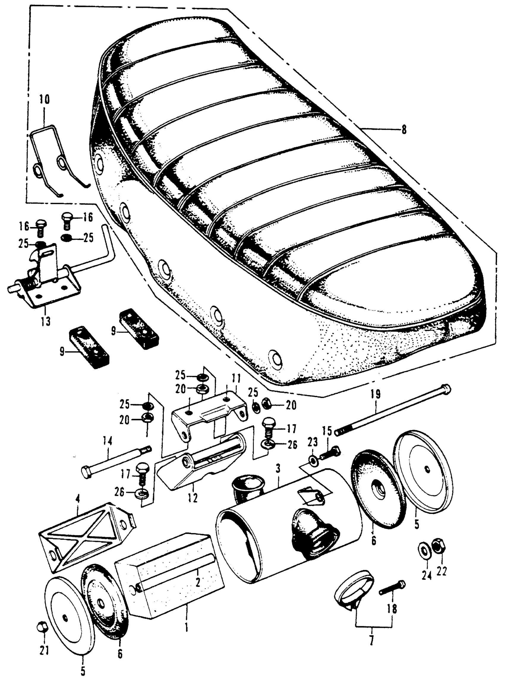 Honda CT70HA MOTORCYCLE, JPN, VIN# CT70H-100001 SEAT + AIR CLEANER Diagram