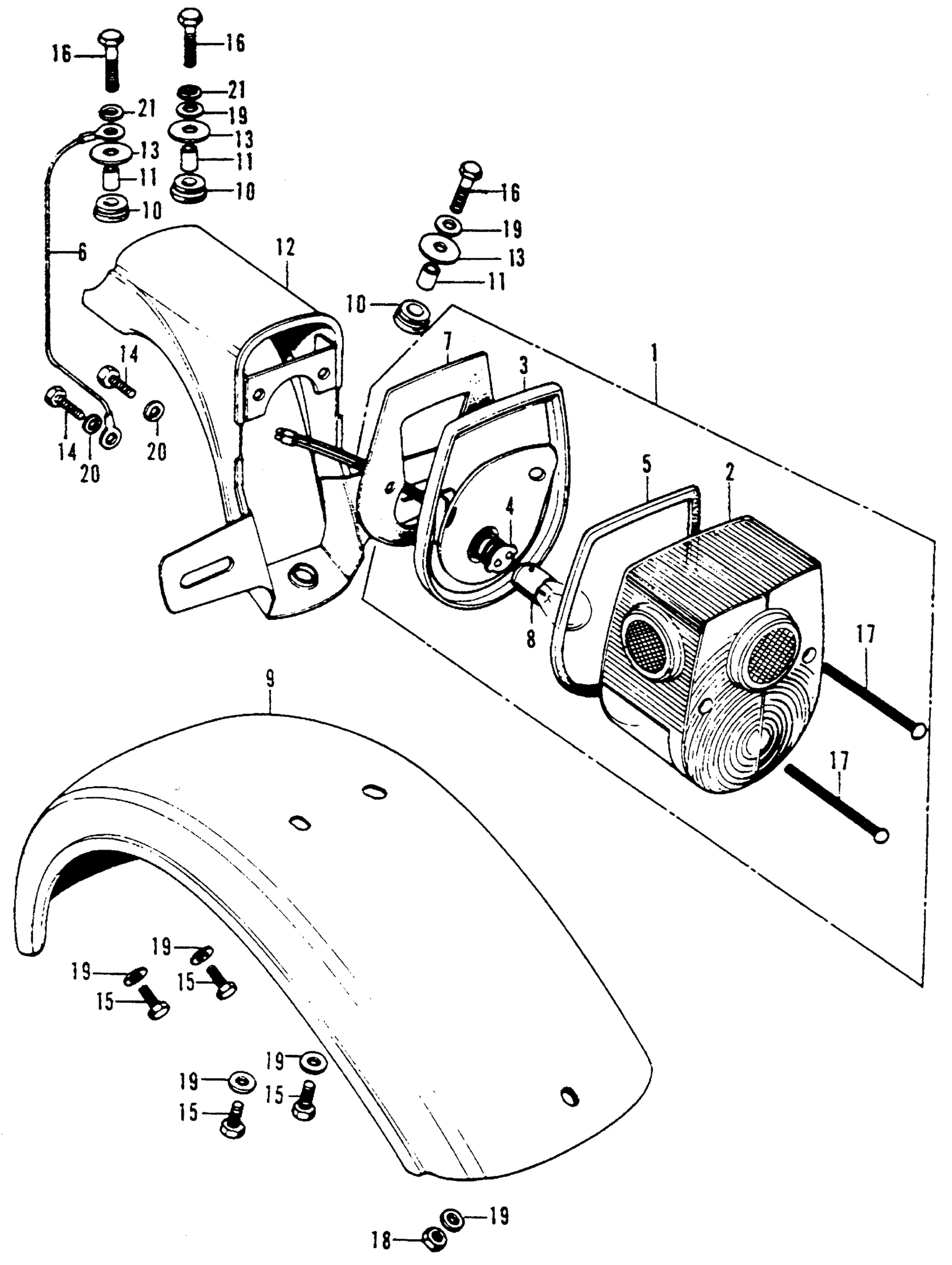 Honda CT70HA MOTORCYCLE, JPN, VIN# CT70H-100001 TAILLIGHT + REAR FENDER Diagram