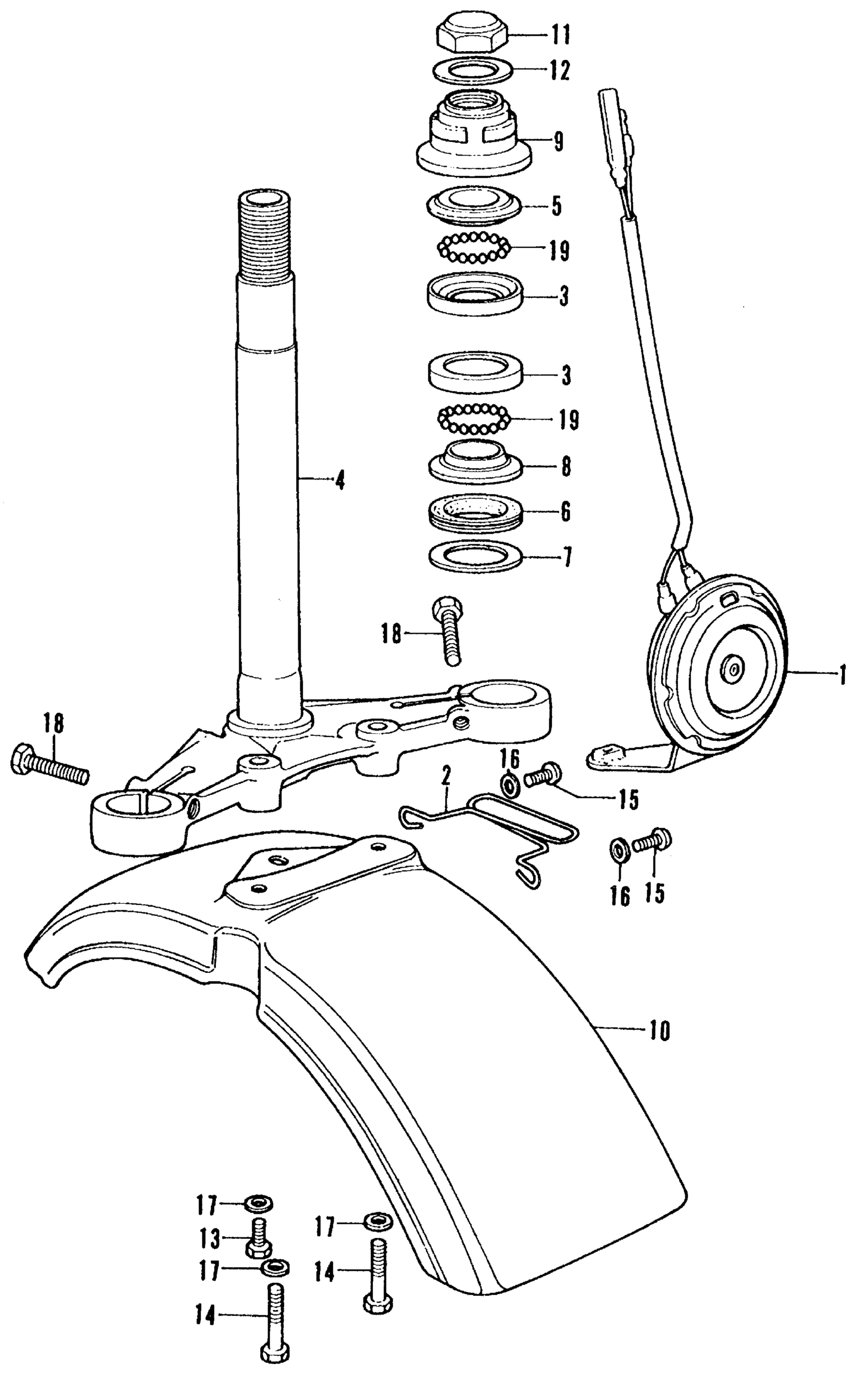 Honda CT70K1A MOTORCYCLE, JPN, VIN# CT70-2000001 STEERING STEM + FRONT FENDER + HORN Diagram