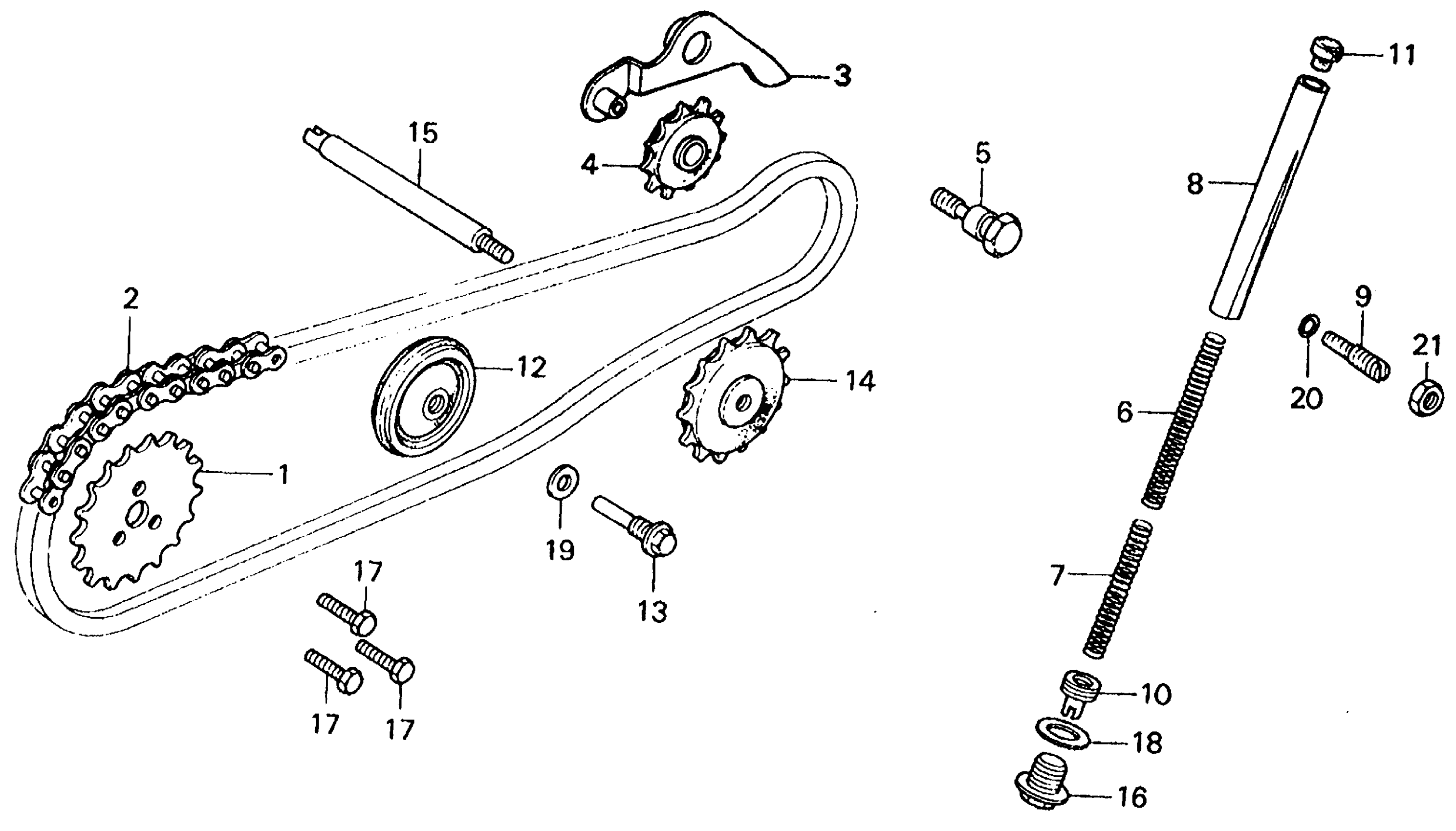 Honda CT70K3A MOTORCYCLE, JPN, VIN# CT70-2300001 TO CT70-2332907 CAM CHAIN + TENSIONER Diagram