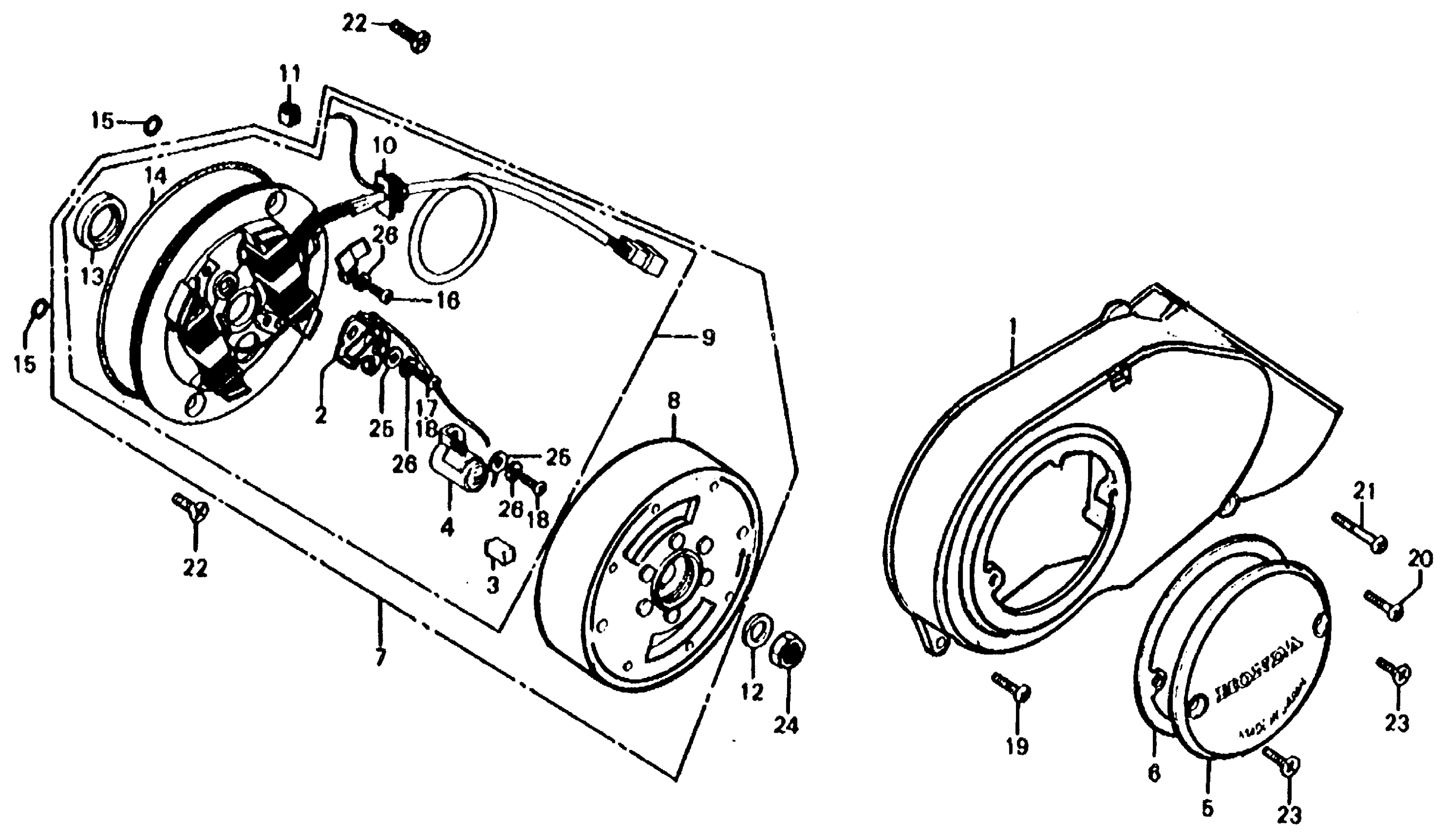 Honda CT70K3A MOTORCYCLE, JPN, VIN# CT70-2300001 TO CT70-2332907 LEFT CRANKCASE COVER + ALTERNATOR Diagram
