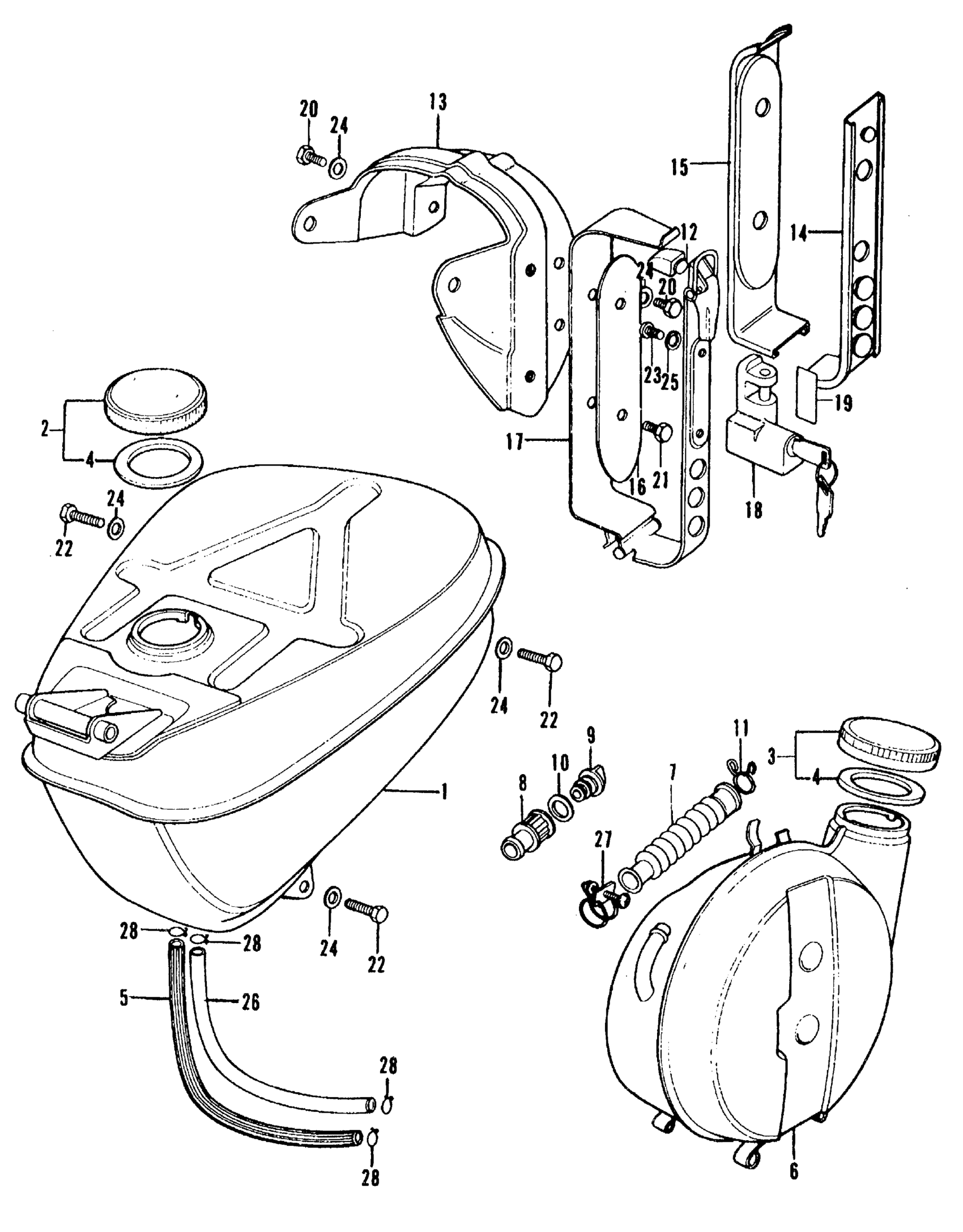 Honda CT90K4A MOTORCYCLE, JPN, VIN# CT90-1400001 FUEL TANK + SUB TANK Diagram