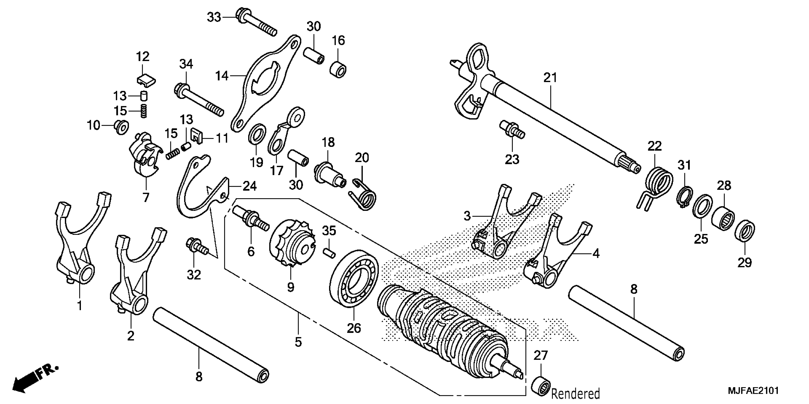 Honda CTX700DA (15) CTX700D, JPN, VIN# JH2RC694-FK100001 GEARSHIFT DRUM (2) Diagram