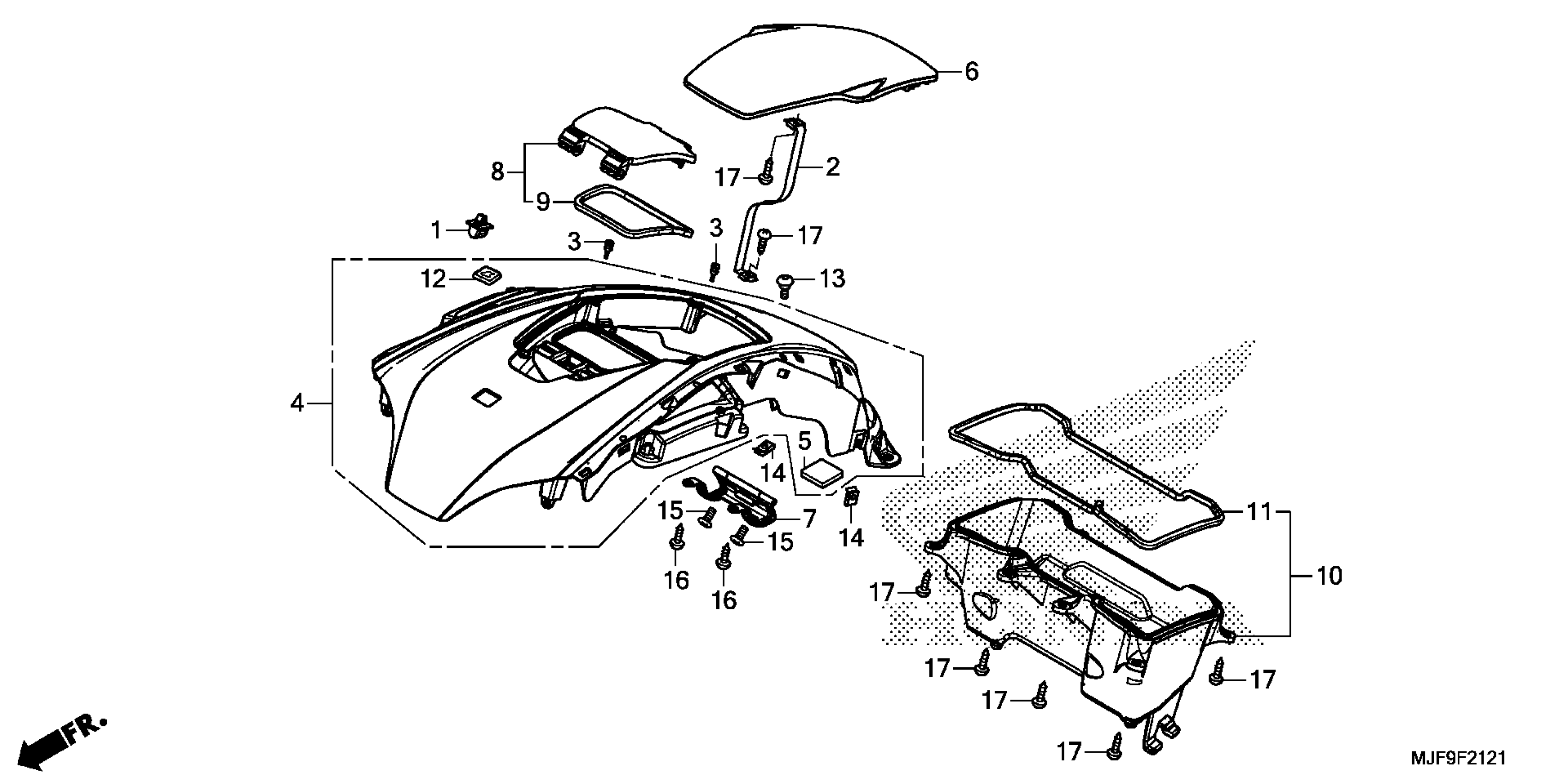 Honda CTX700DA (18) MOTORCYCLE, JPN, VIN# JH2RC694-JK400001 CENTER SHELTER@POCKET Diagram