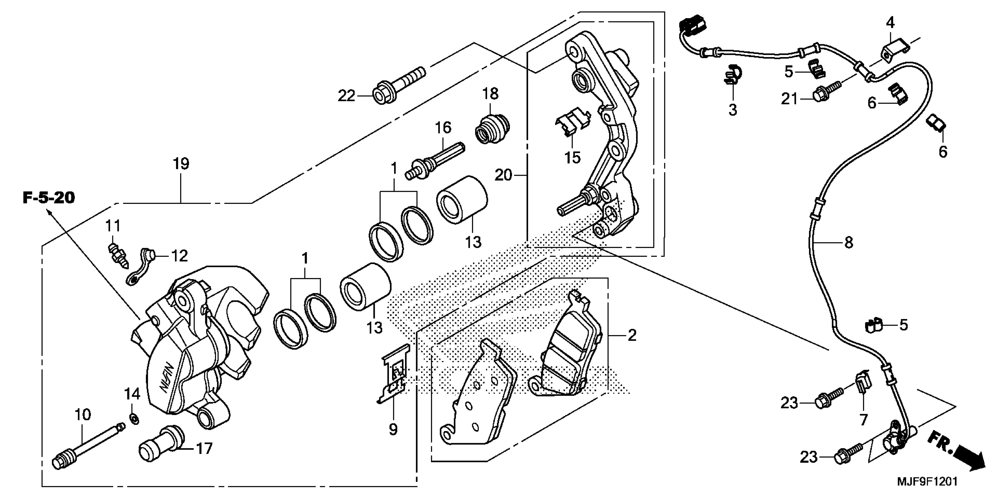 Honda CTX700DA (18) MOTORCYCLE, JPN, VIN# JH2RC694-JK400001 FRONT BRAKE CALIPER (2) Diagram