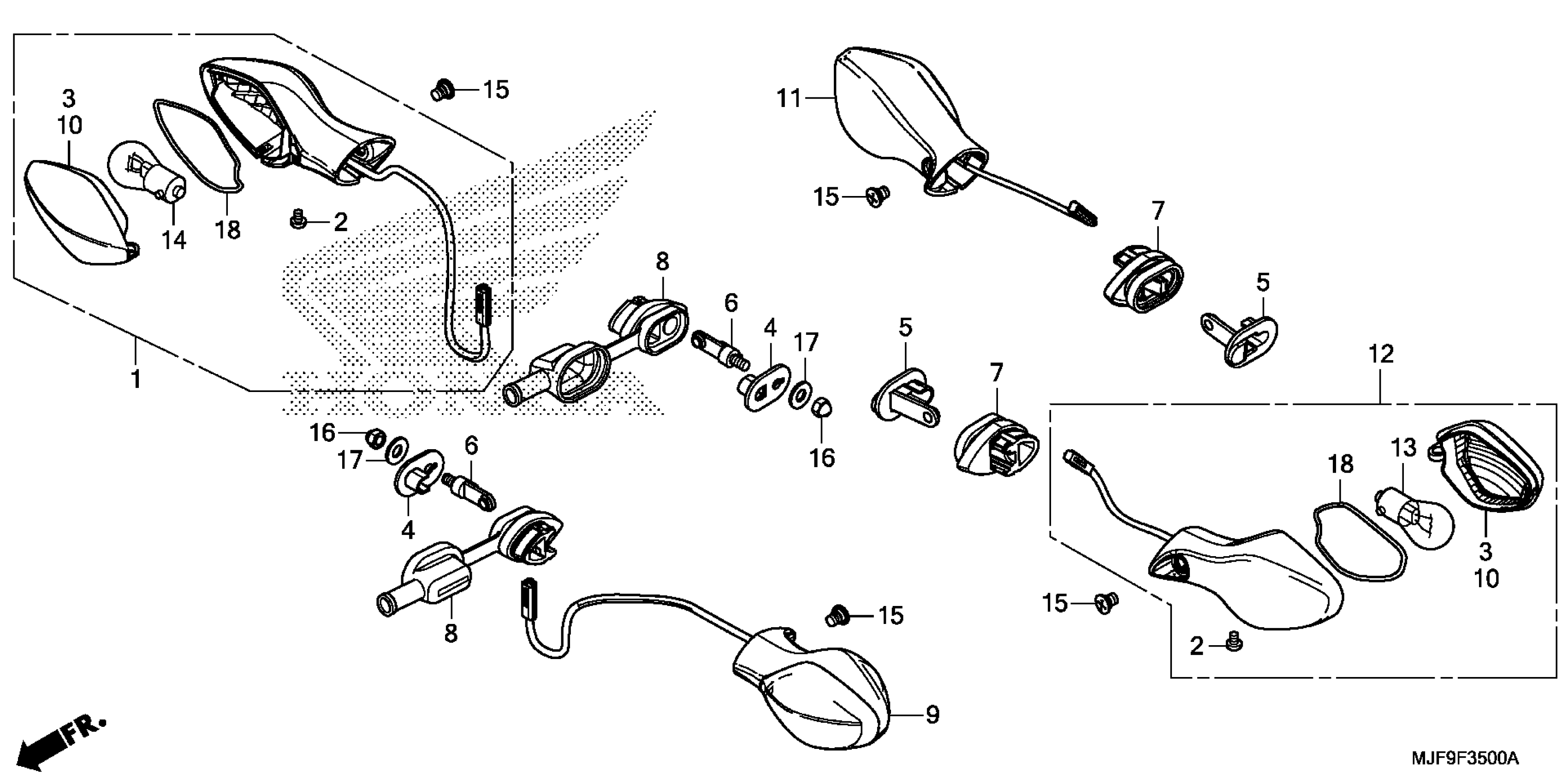 TURN SIGNAL ASSY., R. RR. (12V 21W) | Use up to Frame SN JK400358. This part replaces 33600-MJF-A02.