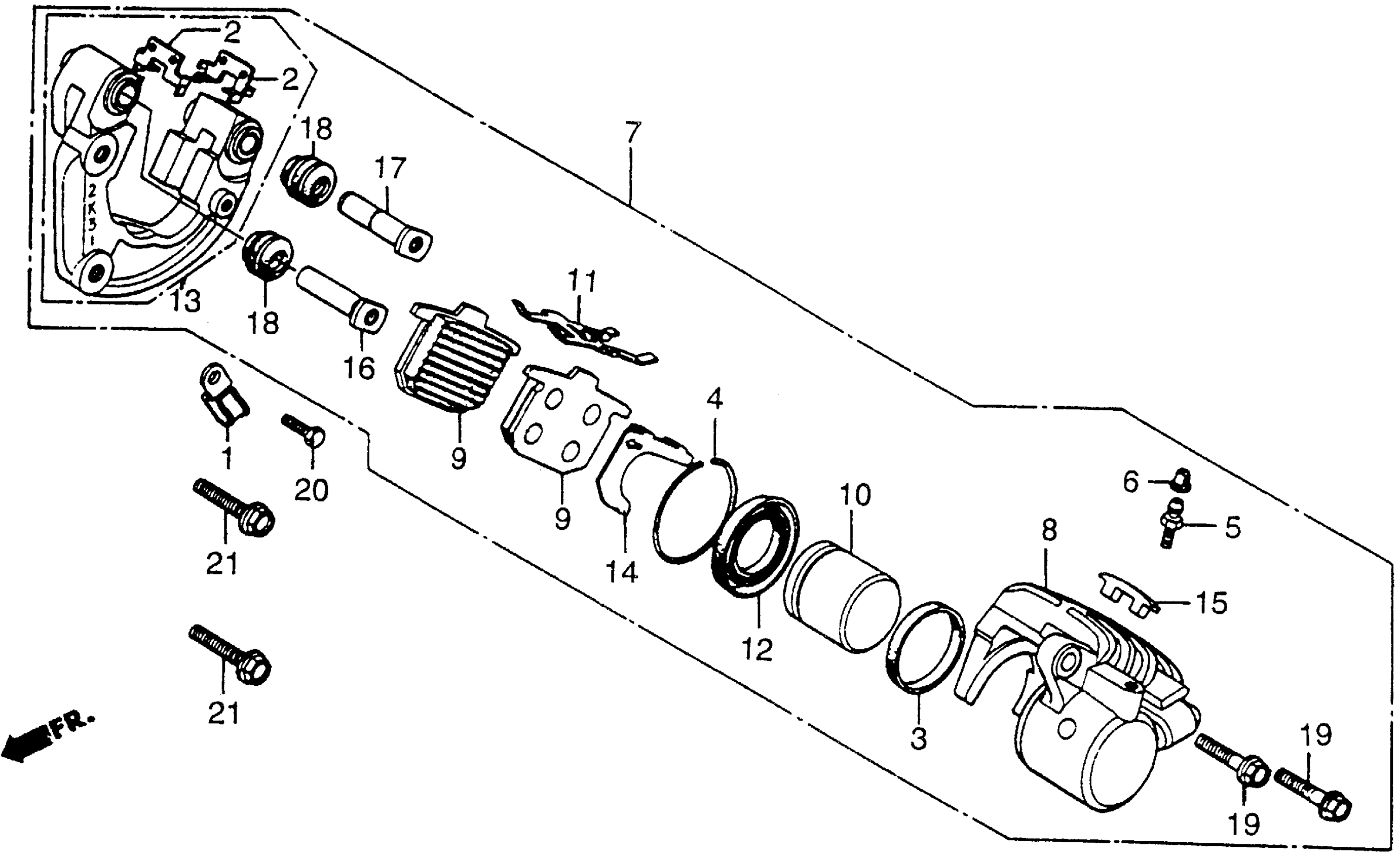 Honda CX500CA (79) CUSTOM, JPN, VIN# PC01-2000017 FRONT BRAKE CALIPER Diagram