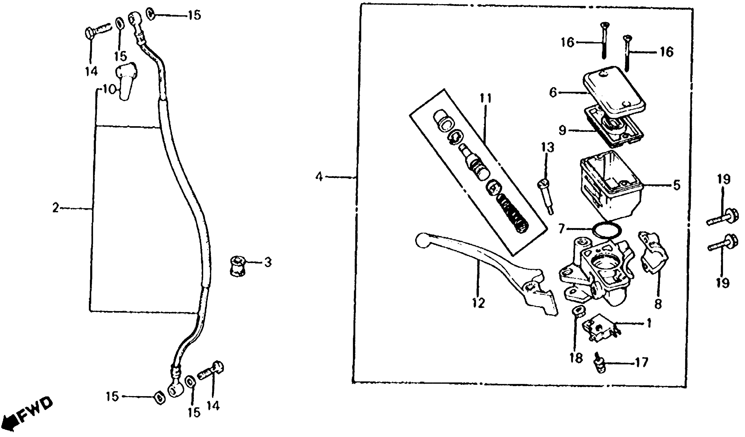 Honda CX500CA (82) CUSTOM, JPN, VIN# JH2PC010-BM300001 TO JH2PC010-BM307398 FR. BRAKE MASTER CYL. 81-82 Diagram