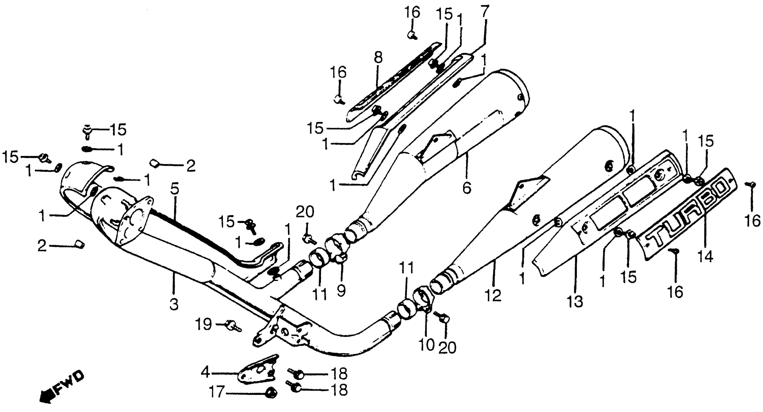 Honda CX500TCA (82) 500 TURBO, JPN, VIN# JH2PC030-CM000017 MUFFLER Diagram
