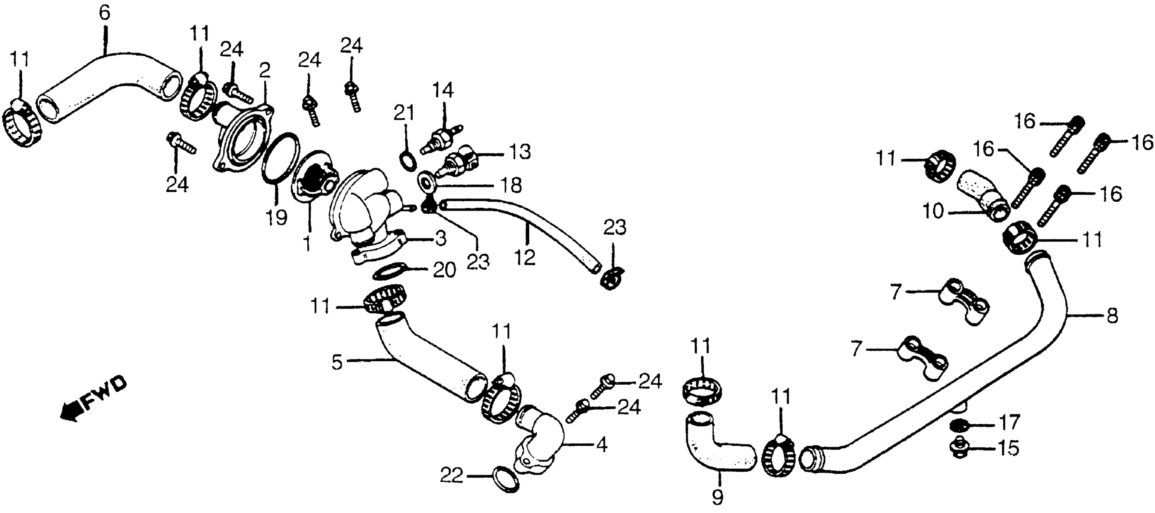 Honda CX500TCA (82) 500 TURBO, JPN, VIN# JH2PC030-CM000017 THERMOSTAT + WATER PIPE Diagram