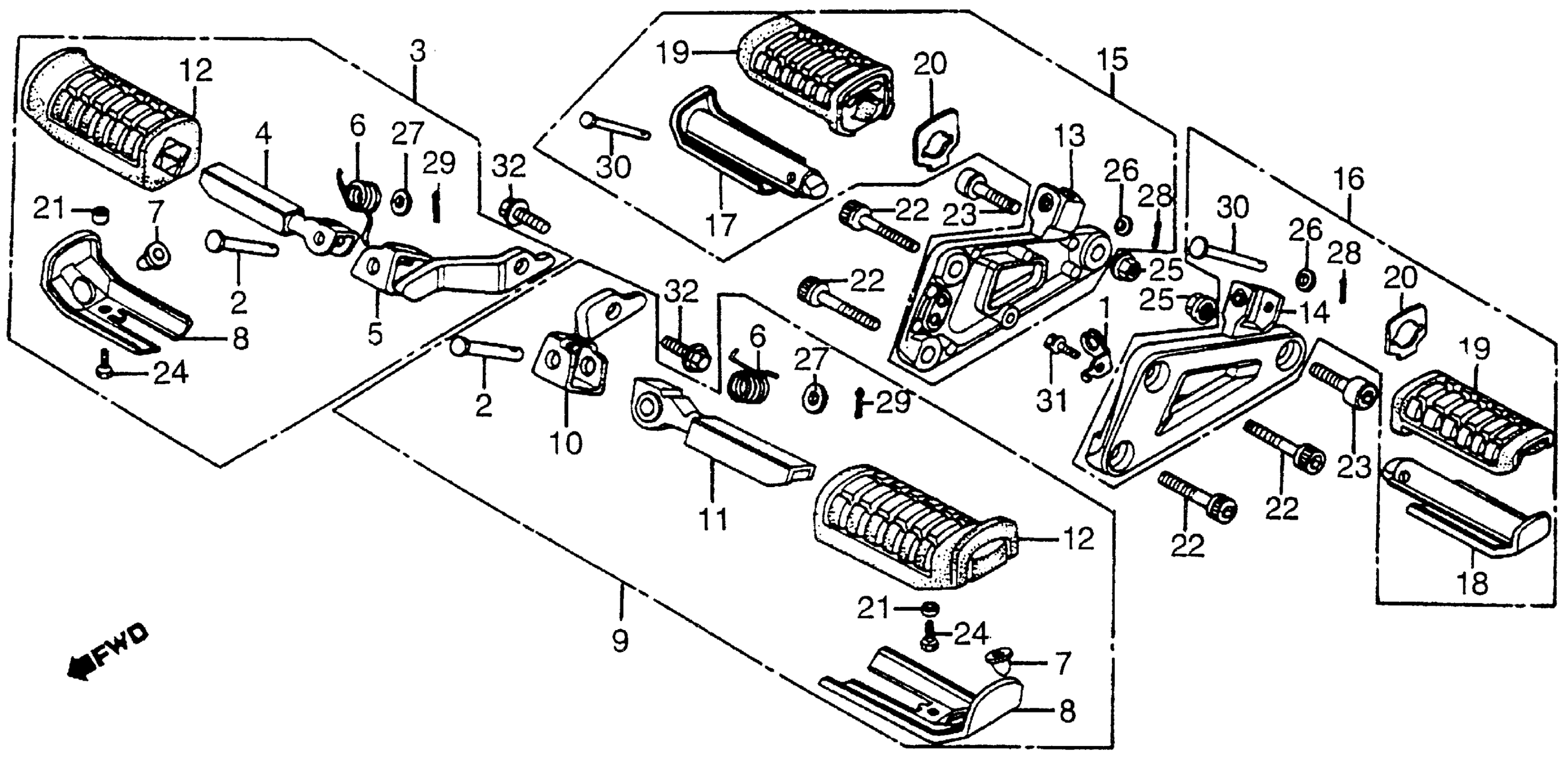 Honda CX650CA (83) CUSTOM, JPN, VIN# JH2RC110-DM000018 TO JH2RC110-DM010120 FOOTPEGS Diagram