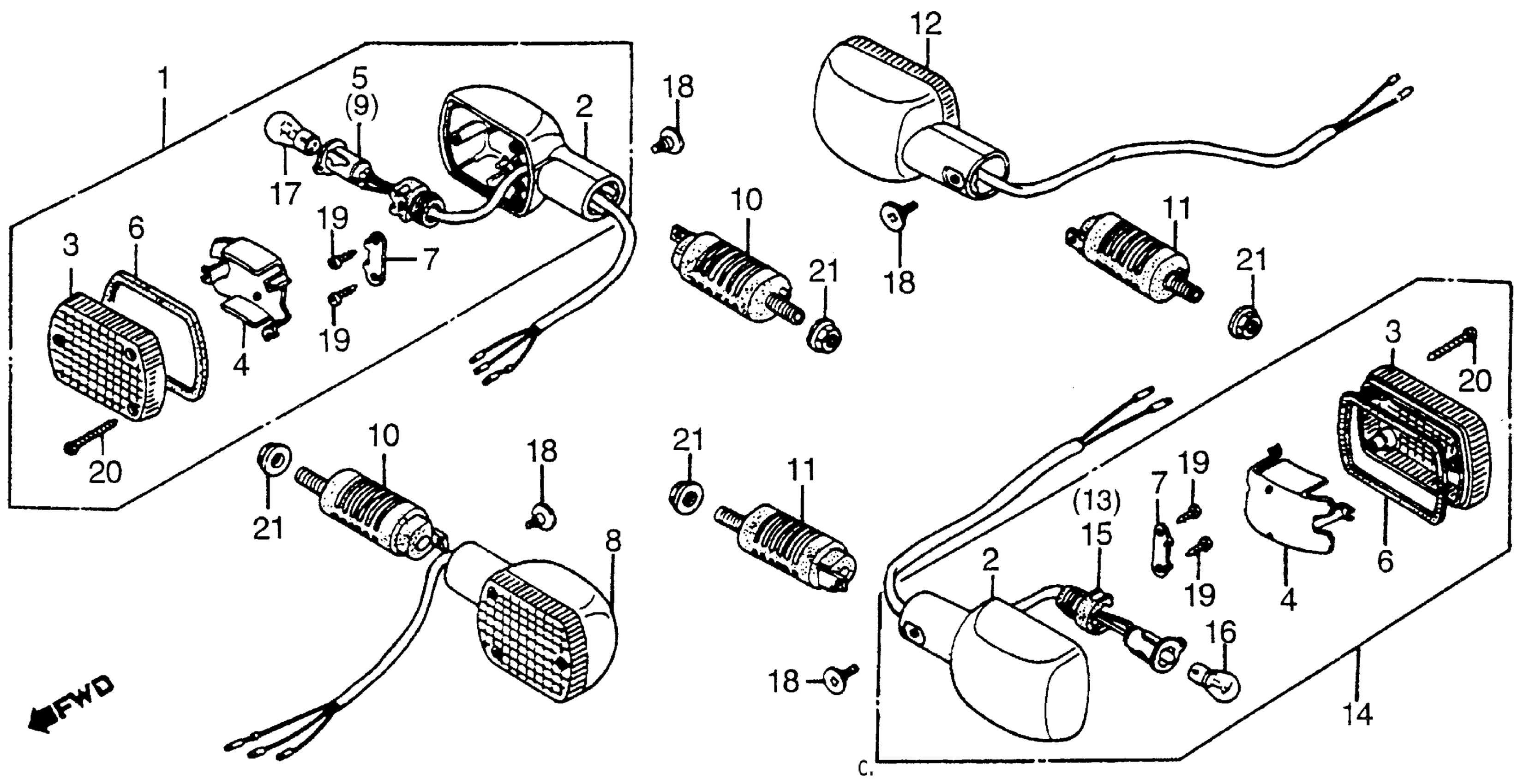 Honda CX650CA (83) CUSTOM, JPN, VIN# JH2RC110-DM000018 TO JH2RC110-DM010120 TURN SIGNAL Diagram