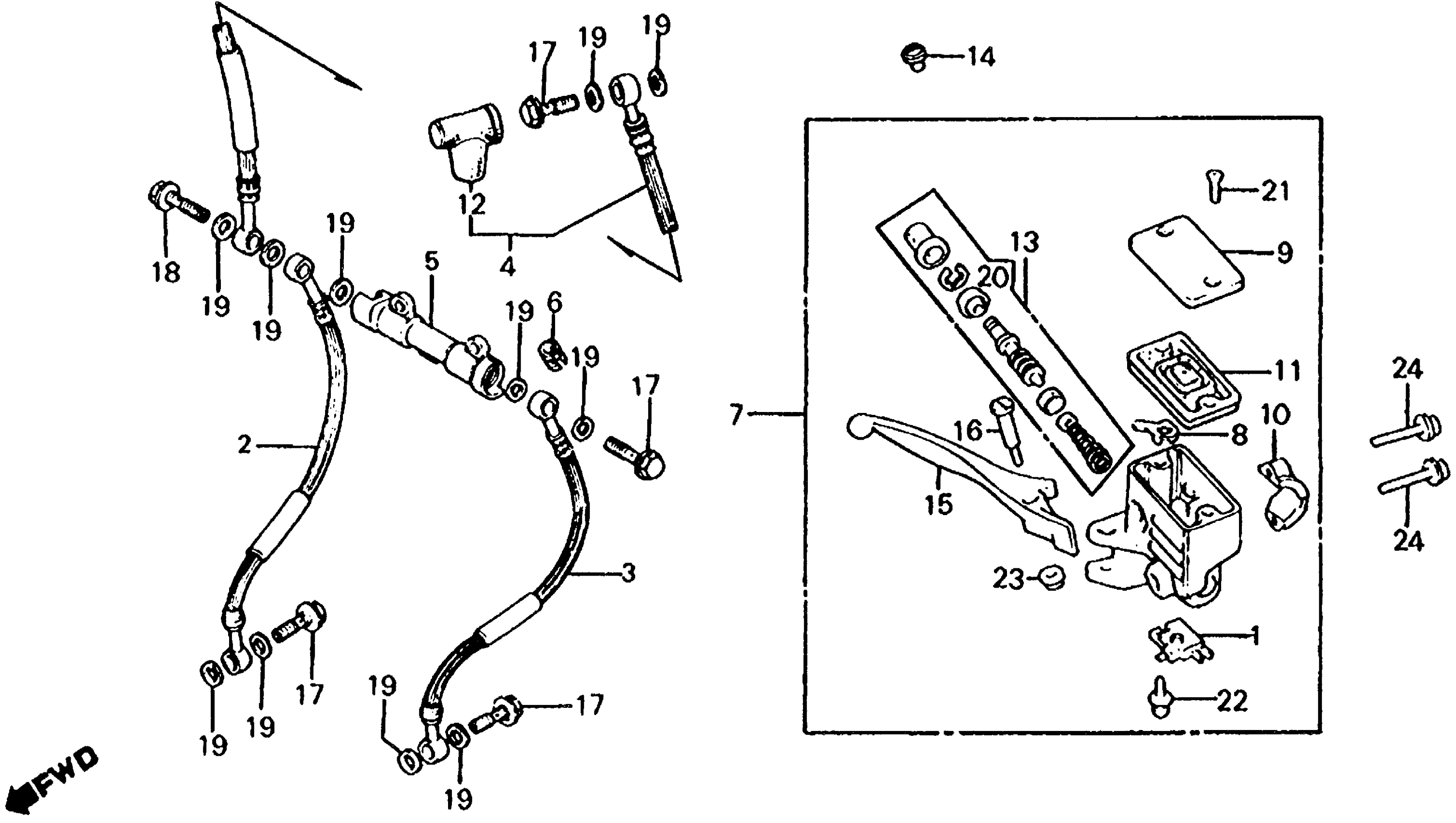 Honda CX650TA (83) 650 TURBO, JPN, VIN# JH2RC160-DM000023 TO JH2RC160-DM001139 FRONT BRAKE MASTER CYLINDER Diagram