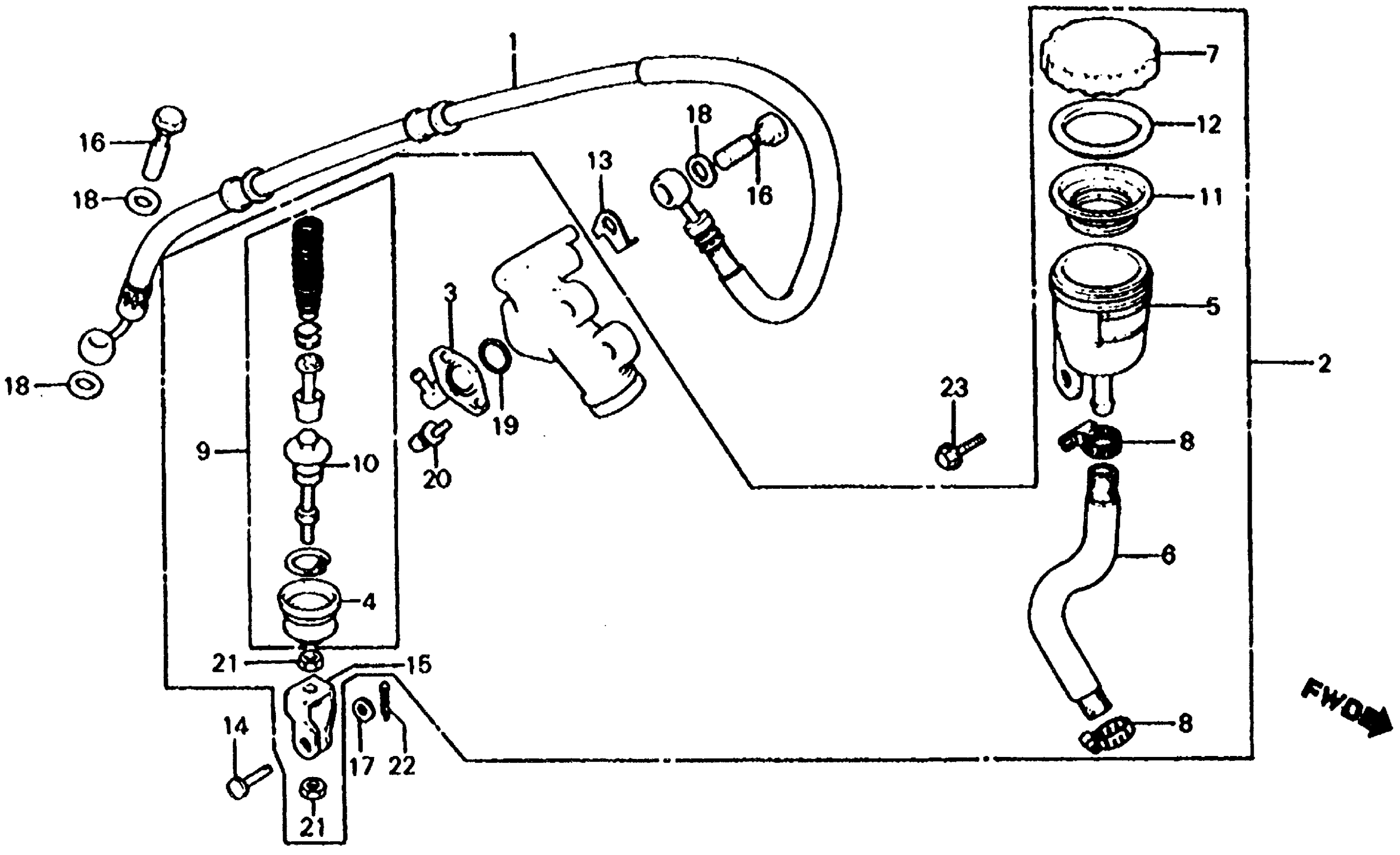 Honda CX650TA (83) 650 TURBO, JPN, VIN# JH2RC160-DM000023 TO JH2RC160-DM001139 REAR BRAKE MASTER CYLINDER Diagram