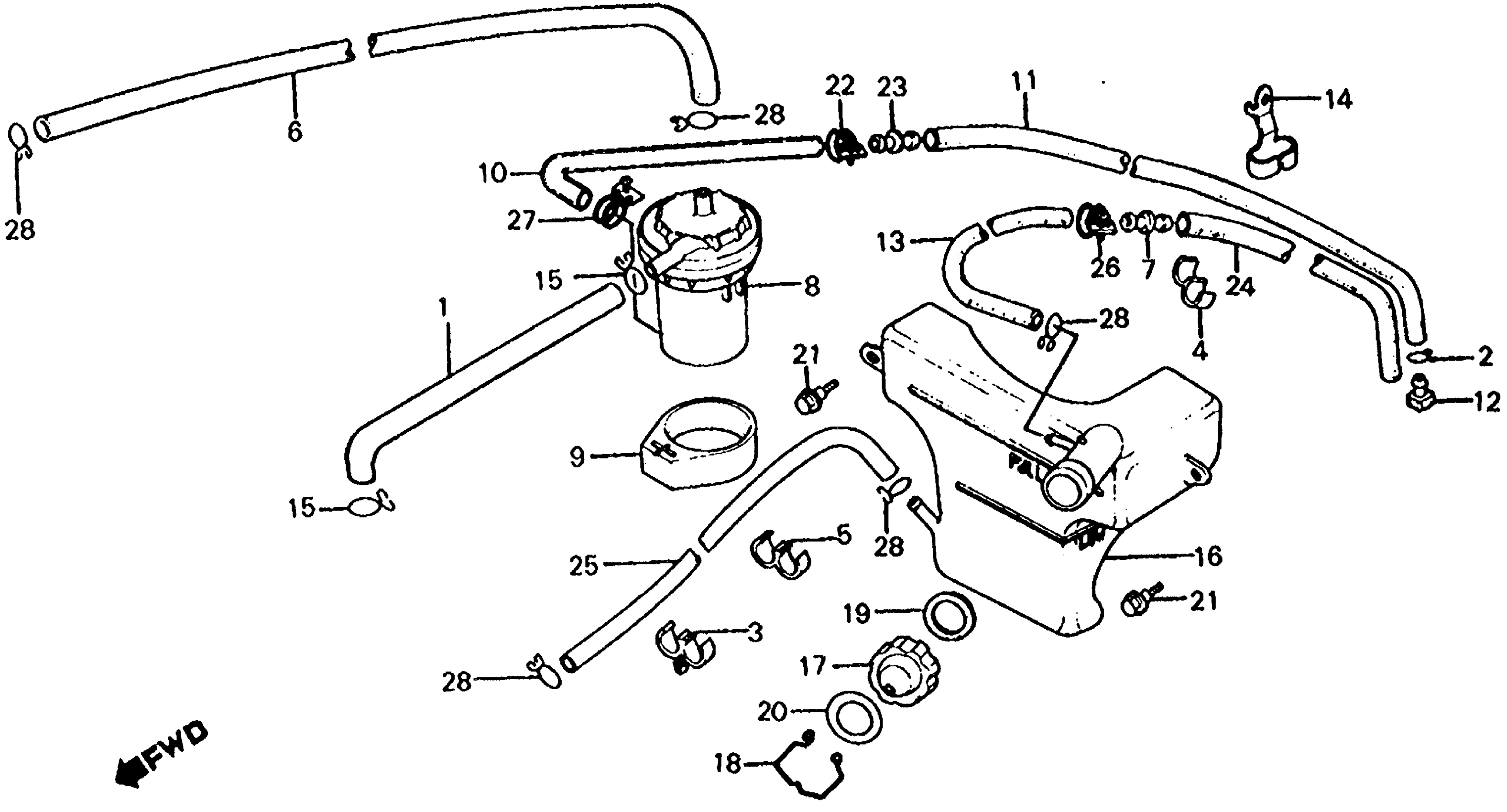 Honda CX650TA (83) 650 TURBO, JPN, VIN# JH2RC160-DM000023 TO JH2RC160-DM001139 RESERVE TANK + BREATHER SEPARATOR Diagram