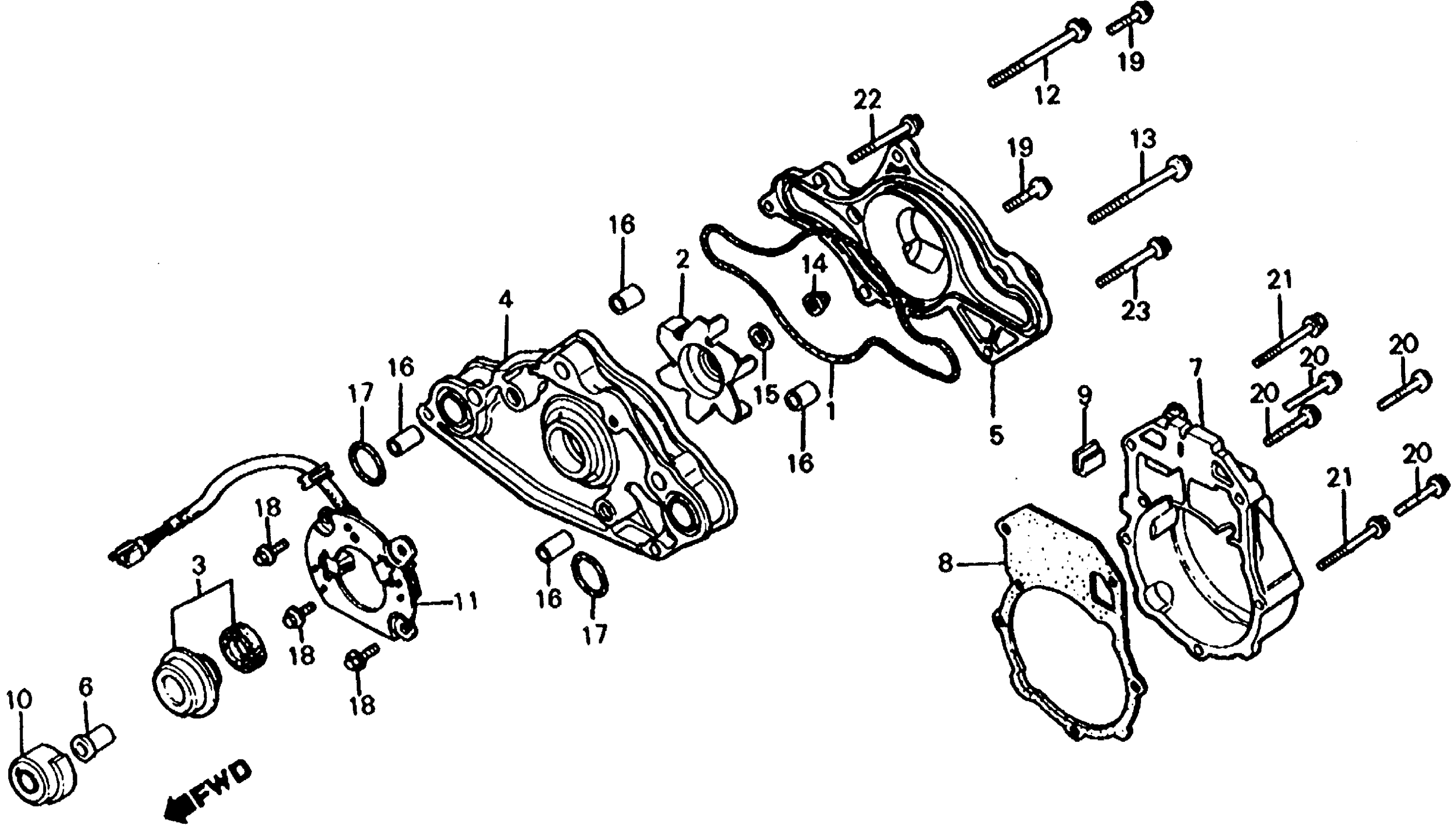 Honda CX650TA (83) 650 TURBO, JPN, VIN# JH2RC160-DM000023 TO JH2RC160-DM001139 WATER PUMP + PULSE GENERATOR Diagram
