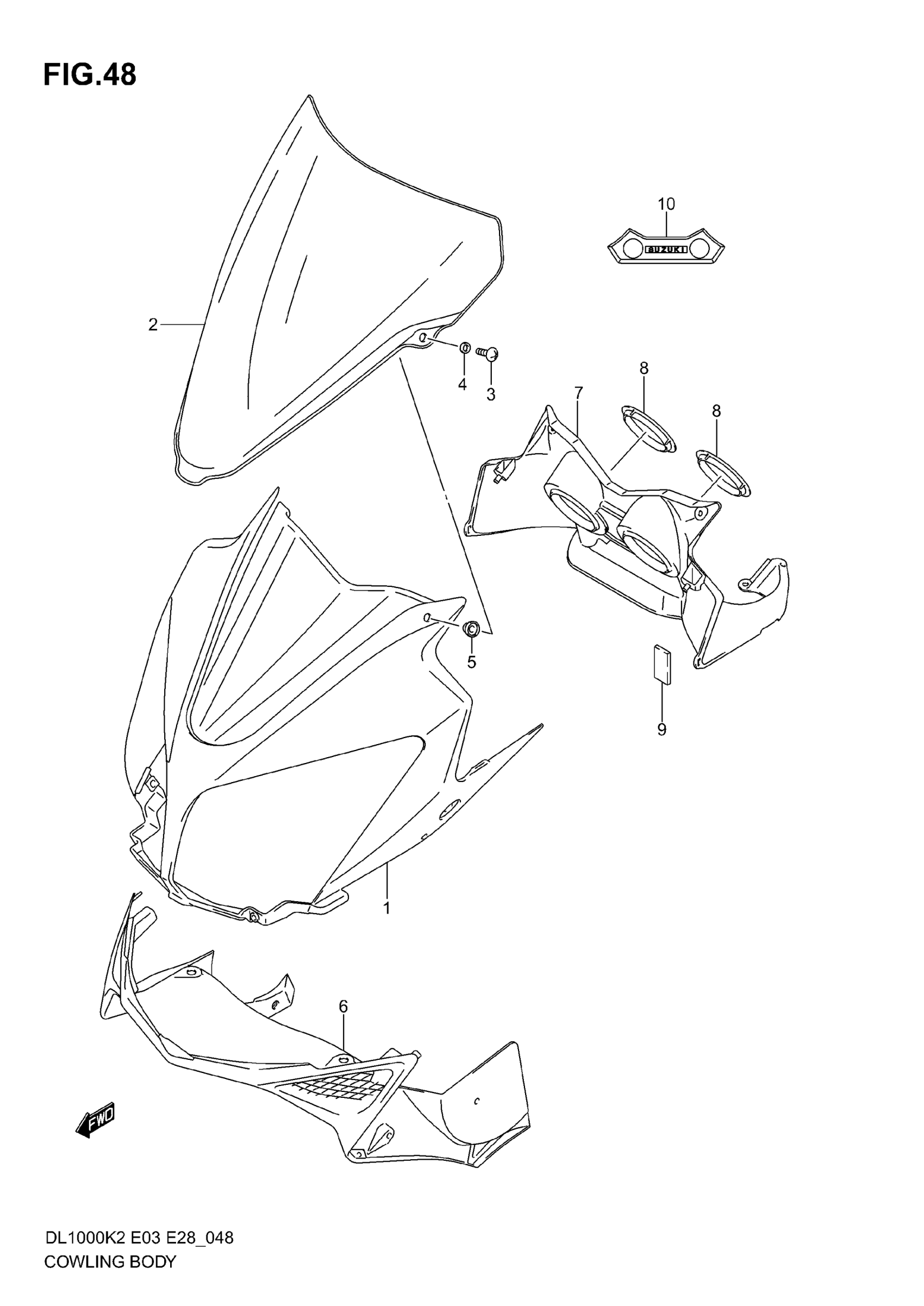 Suzuki DL1000 (2006) COWLING BODY (MODEL K2/K3) Diagram
