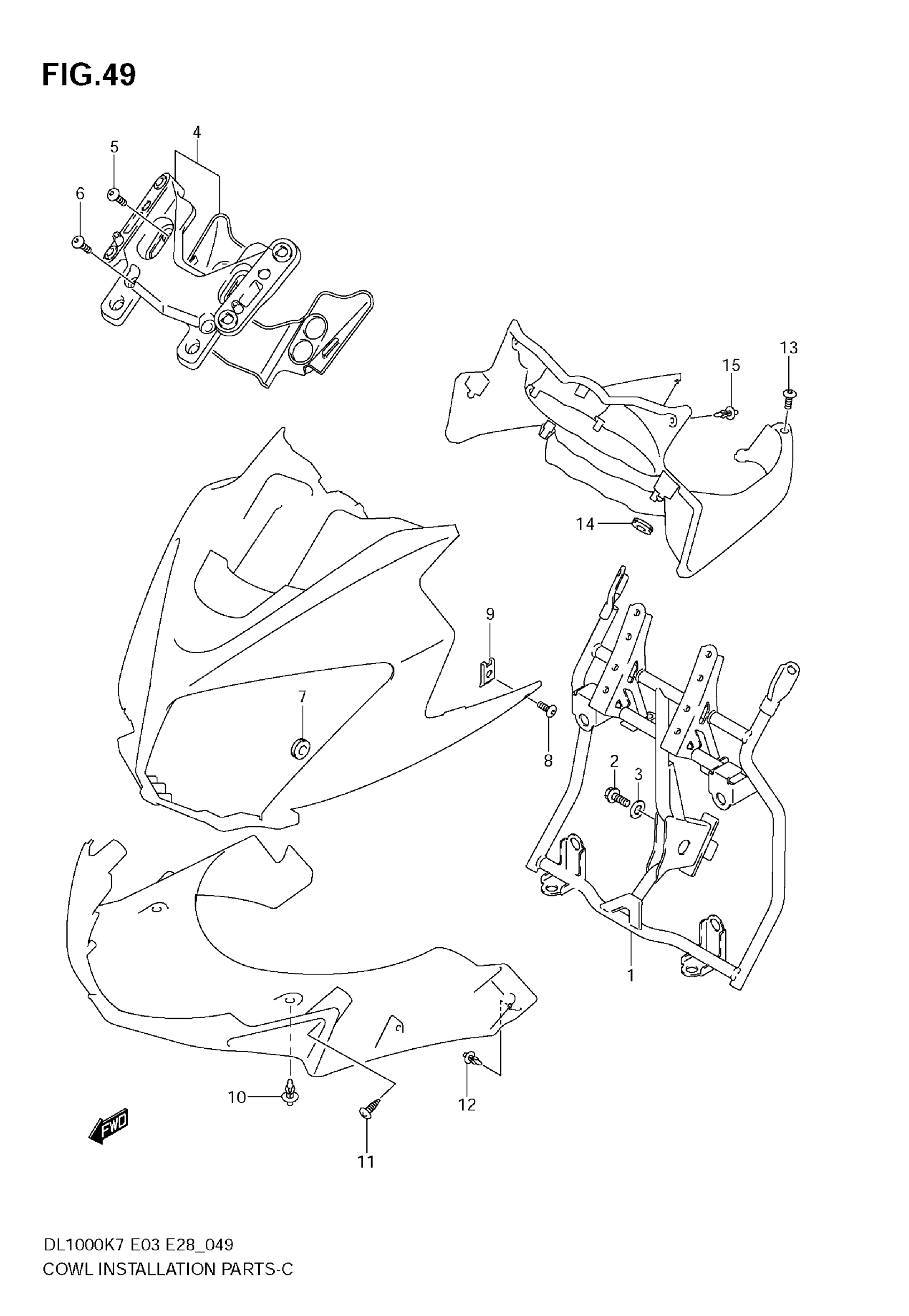 Suzuki DL1000 (2009) COWL BODY INSTALLATION PARTS Diagram