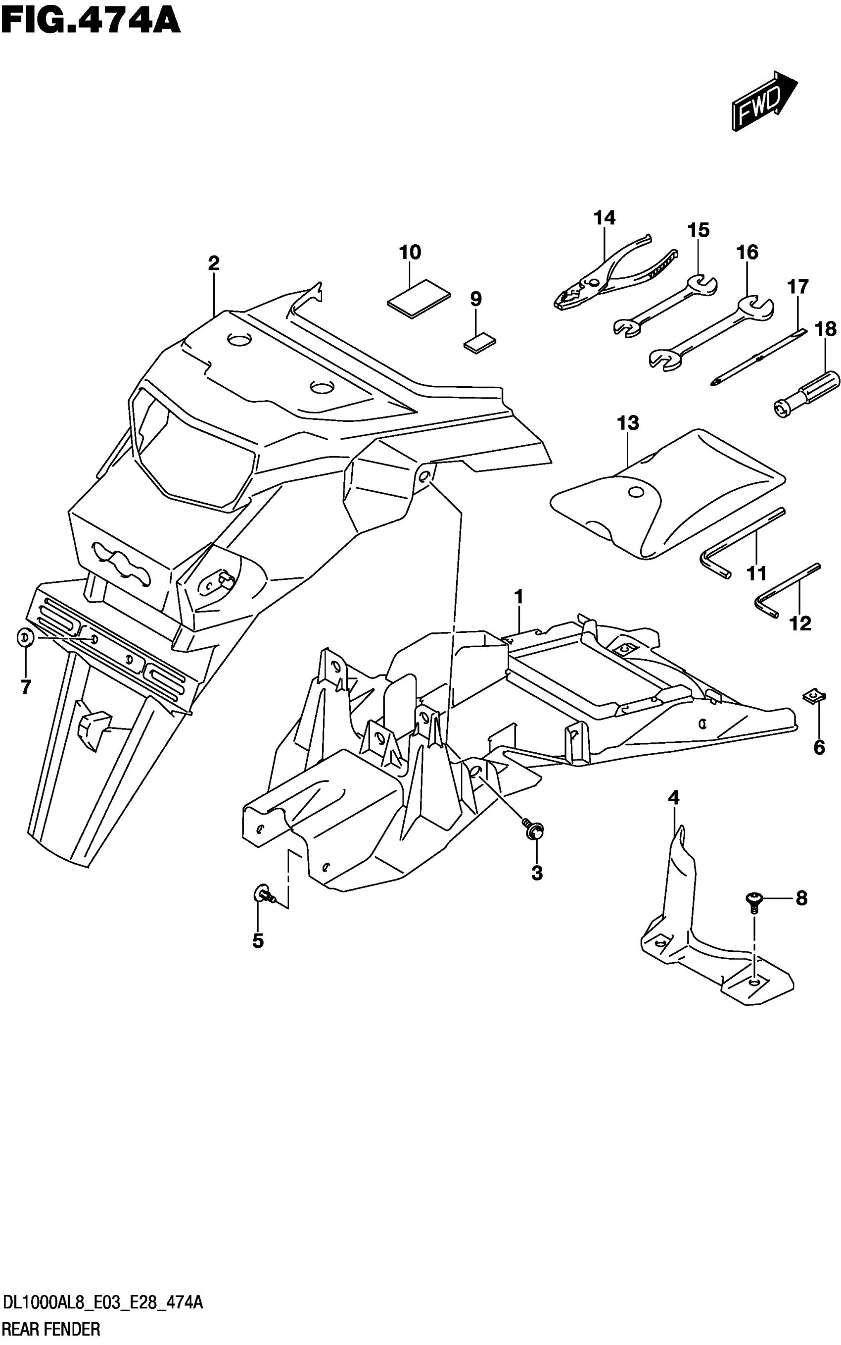 Suzuki DL1000AL8 (2018) REAR FENDER Diagram