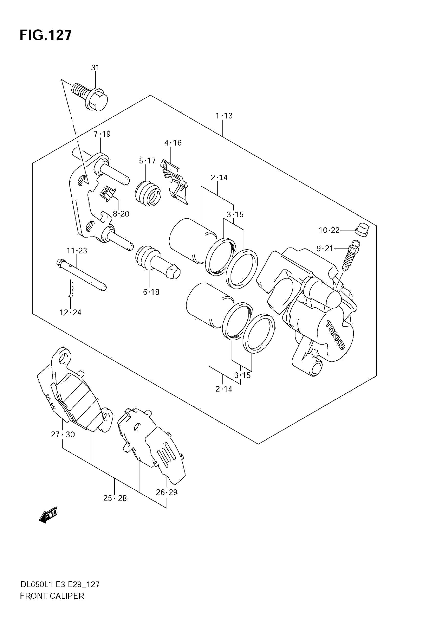 Suzuki DL650AL1 (2011) FRONT CALIPER Diagram