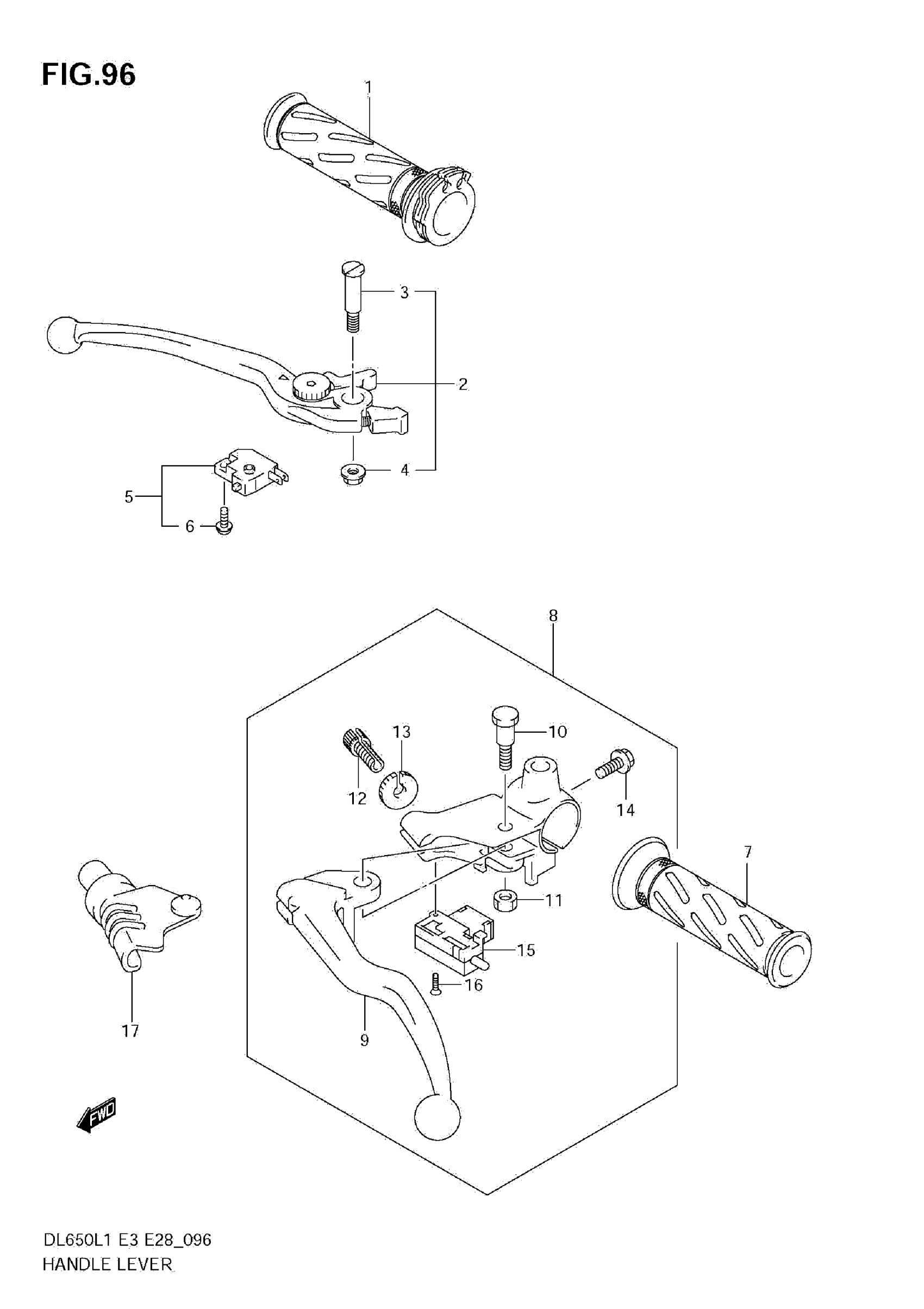Suzuki DL650AL1 (2011) HANDLE LEVER (DL650A L1 E28) Diagram