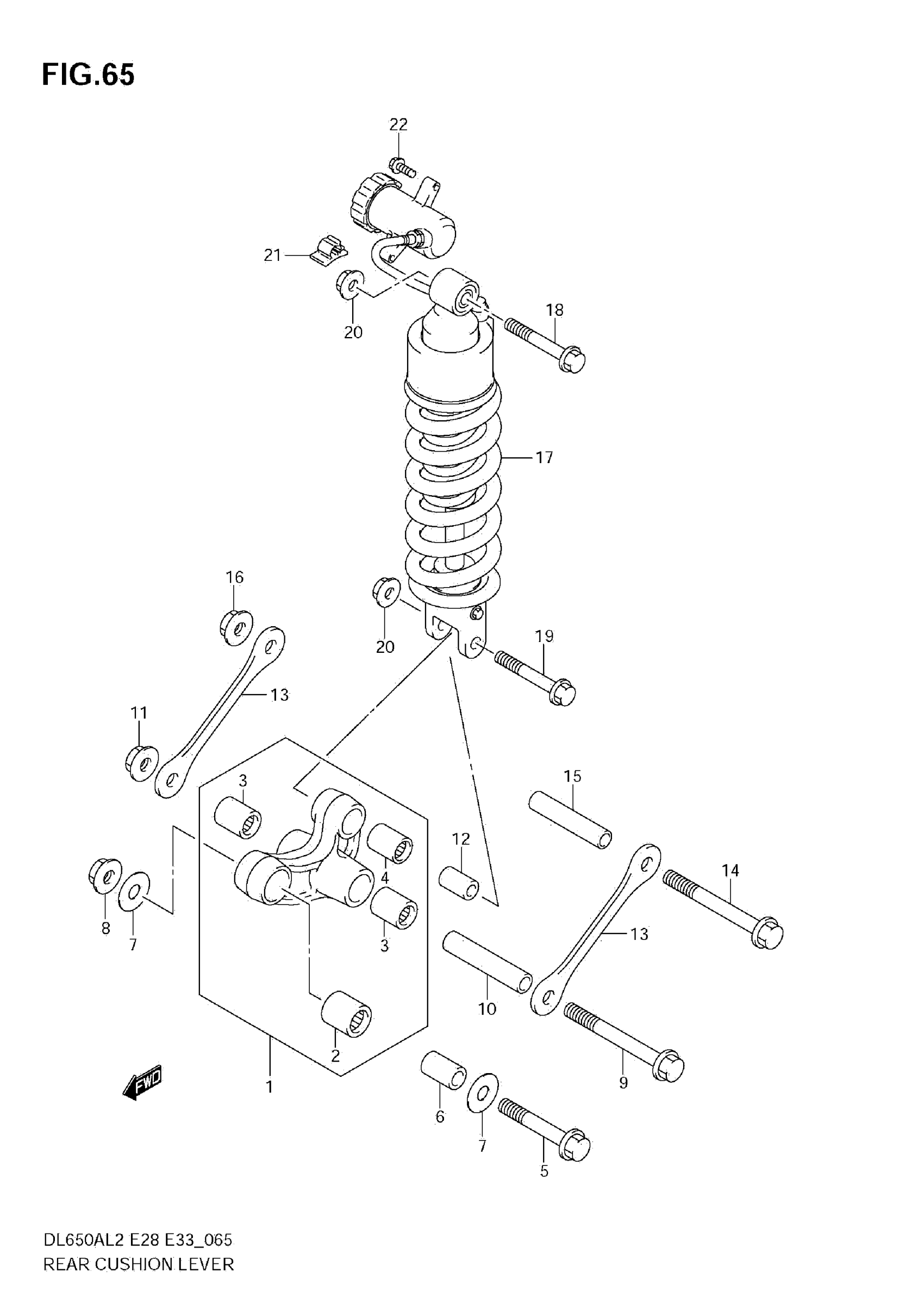 Suzuki DL650AL2 (2012) REAR CUSHION LEVER (E28) Diagram