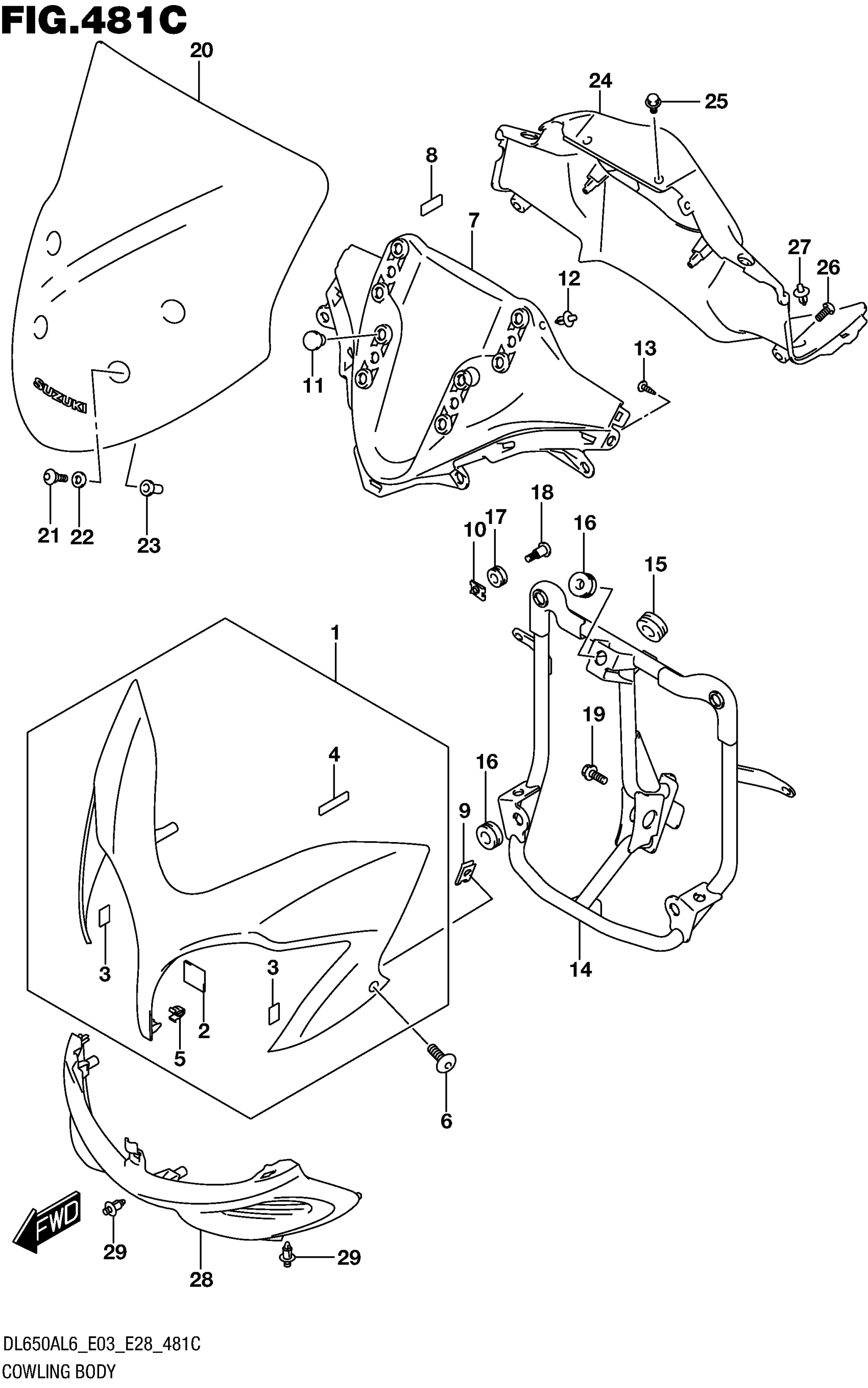Suzuki DL650AL6 (2016) COWLING BODY (DL650AL6 E03) Diagram