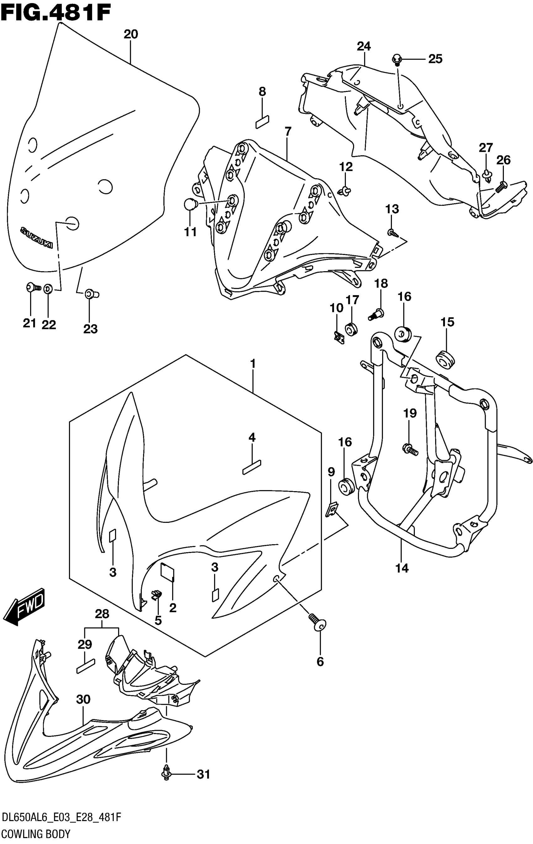 Suzuki DL650AL6 (2016) COWLING BODY (DL650XAL6 E03) Diagram