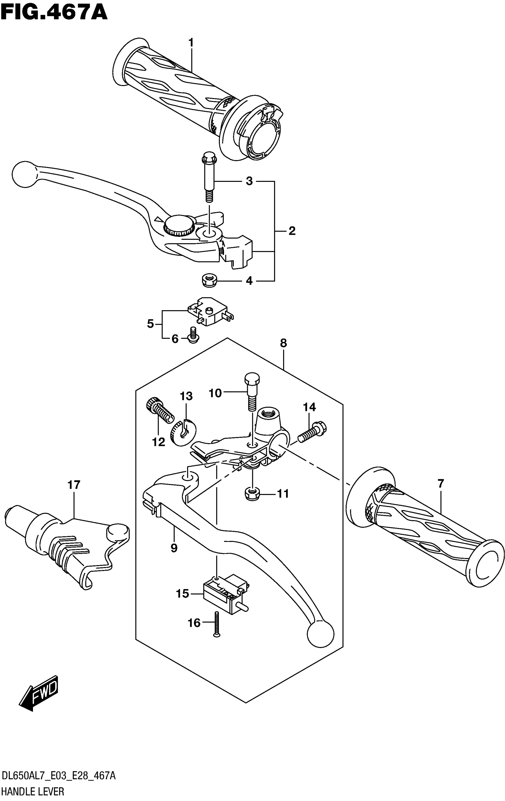Suzuki DL650AL7 (2017) HANDLE LEVER (DL650AL7 E03) Diagram